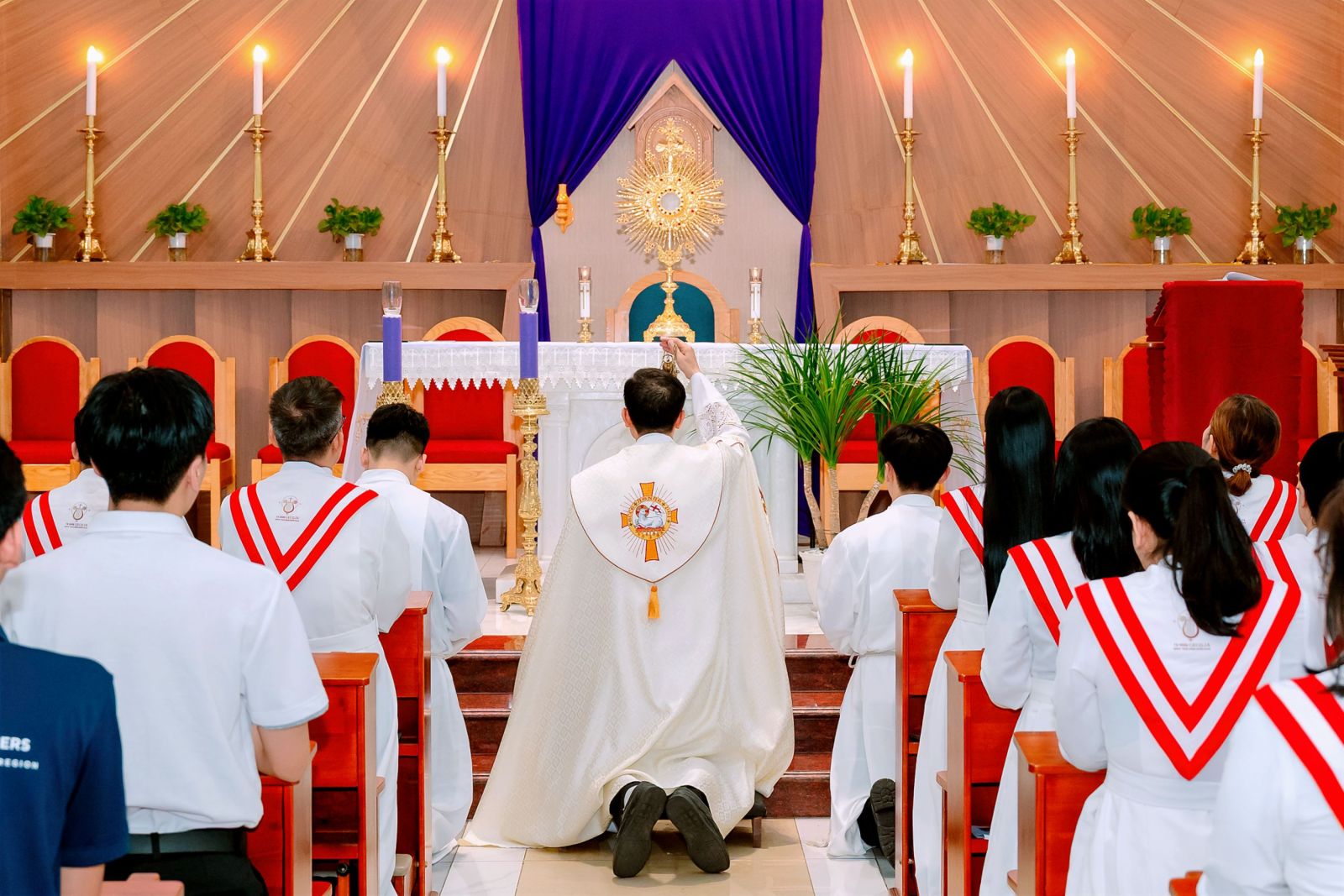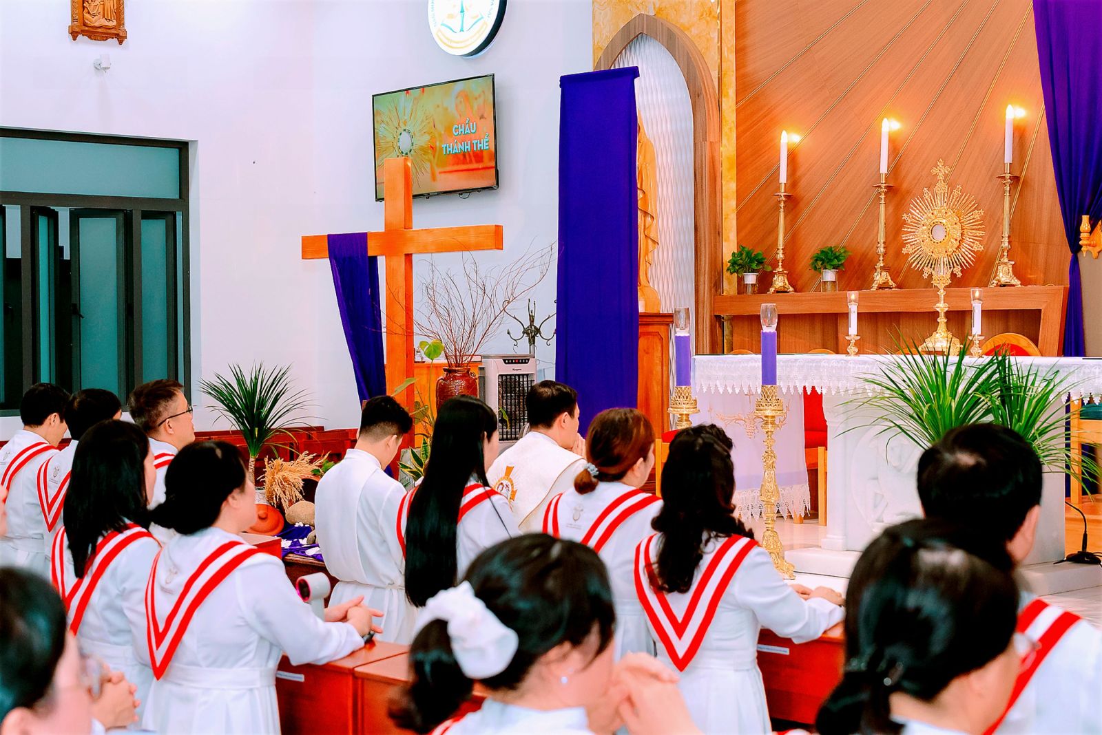 Ngay từ 17g00, cộng đoàn đã quy tụ tại Trụ sở Giáo phận Thái Bình – miền Nam để bước vào giờ Chầu Thánh Thể trong bầu khí linh thiêng và lắng đọng. Trước Thánh Thể Chúa, mỗi người dâng lên những tâm tình của Mùa Chay Thánh, hướng lòng về hành trình thập giá của Đức Kitô. Trong thinh lặng cầu nguyện, cộng đoàn kín múc sức mạnh thiêng liêng để can đảm bước theo Người trên con đường hiến dâng. Cùng lúc đó, nhiều thành viên đã lãnh nhận Bí tích Hòa Giải, giao hòa với Chúa và chuẩn bị tâm hồn sốt sắng bước vào Tuần Thánh.