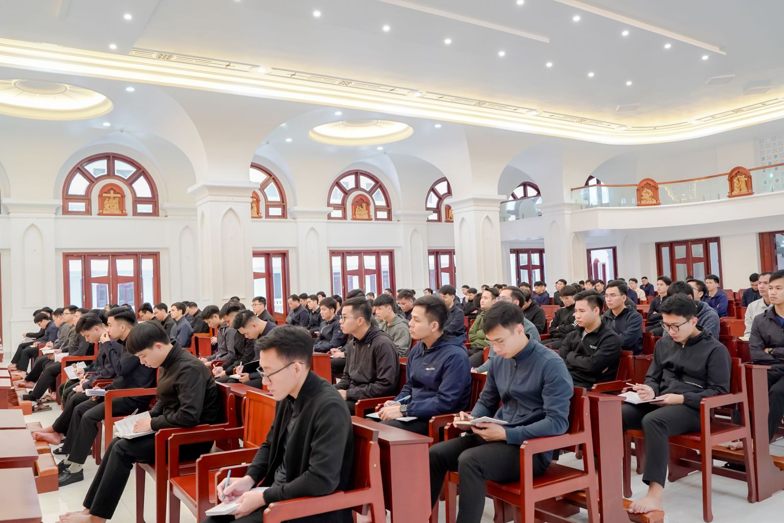 Kỳ tĩnh tâm bắt đầu lúc 20g00 ngày 06/02/2026 tại nhà nguyện Đại Chủng viện. Trong bầu khí thinh lặng, anh em chủng sinh đã cùng quy tụ bên Chúa Giêsu Thánh Thể để dâng lên Người hành trình một năm qua với cả những thành công và yếu đuối. Đây là dịp để mỗi chủng sinh đối diện với con người thật của mình, đồng thời cảm nhận sâu sắc hơn tình yêu của Thiên Chúa đang nâng đỡ ơn gọi trước những thử thách của cuộc sống.