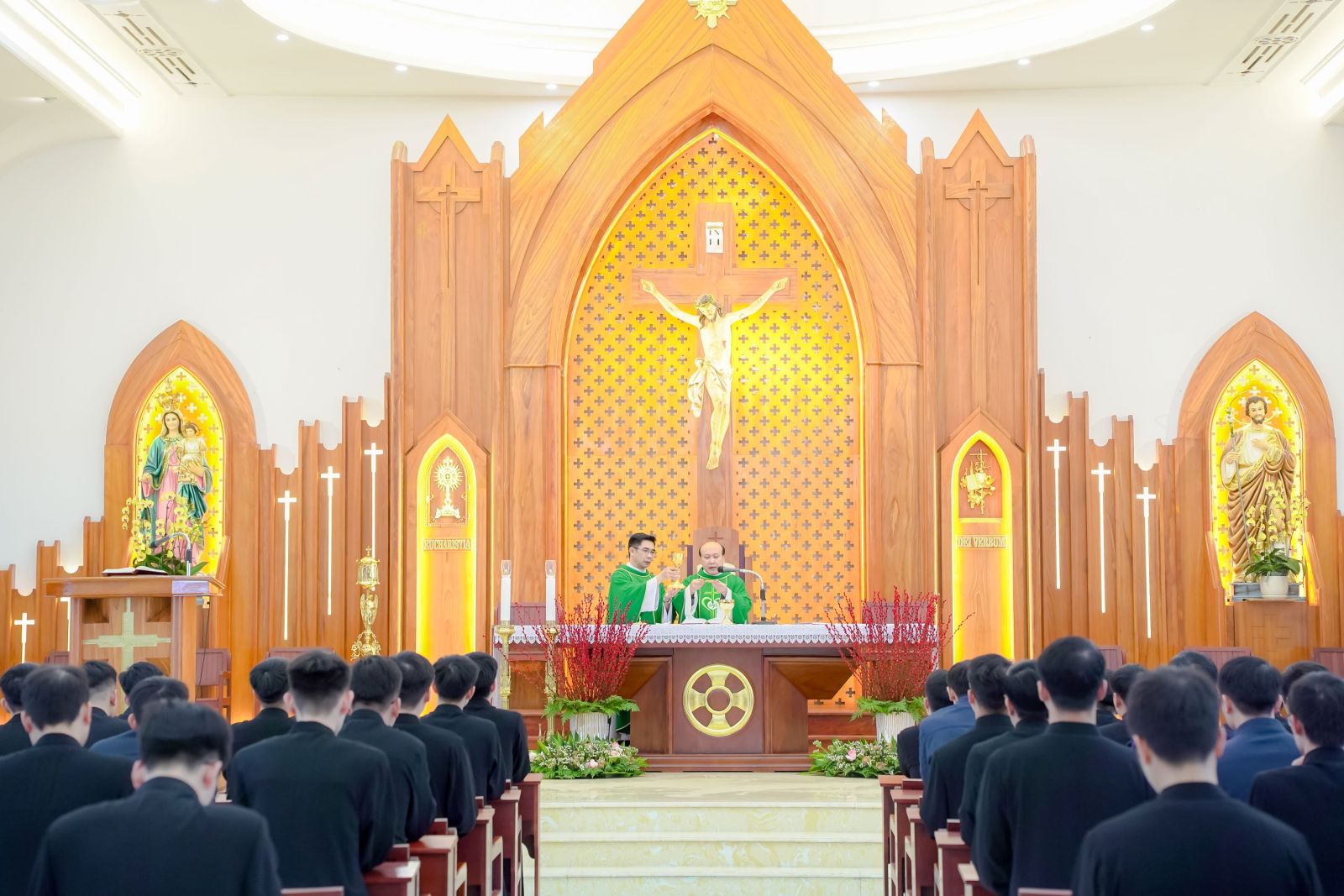 Cao điểm của kỳ tĩnh tâm là Thánh lễ được cử hành lúc 10g00. Qua Lời Chúa và bài giảng, các chủng sinh tiếp tục được cha Phó Giám đốc củng cố và xác tín về ơn gọi của mình bằng việc thanh luyện lựa chọn như vua Salômôn. Vua Salômôn đã không xin tuổi thọ, quyền lực hay sự giàu có, nhưng ông đã thanh lọc tất cả, vượt trên những cám dỗ đó để chỉ chọn một điều quan trọng duy nhất: một tâm hồn ngoan ngoãn biết xét đoán dân Chúa và phân biệt đúng sai dưới sự chỉ dẫn của Chúa. Từ đó, cha Phó Giám đốc mời gọi anh em chủng sinh hãy học nơi vua Salômôn sự khôn ngoan đích thực là biết chọn Chúa và cậy dựa hoàn toàn vào Người.