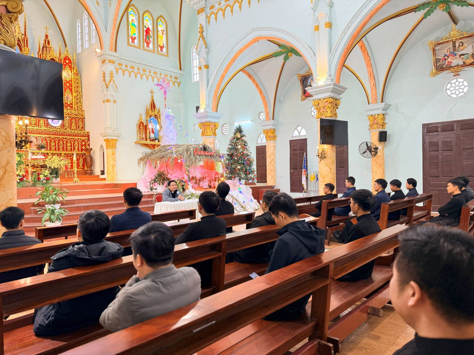 Chương trình tĩnh tâm được bắt đầu vào lúc 08g30. Dựa trên đoạn Tin Mừng Mt 2,1-12, cha xứ Đaminh mời gọi anh em chiêm ngắm hình ảnh ba Nhà Đạo Sĩ lên đường tìm kiếm Đấng Cứu Thế. Từ cuộc lên đường ấy, mỗi chủng sinh được mời gọi nhìn lại động lực thúc đẩy mình bước theo Chúa: đâu là khát vọng đích thực, đâu là những điều có thể làm lu mờ sự trong sáng của ơn gọi. Cha nhấn mạnh rằng đời sống cầu nguyện và sự gắn bó bền chặt với Chúa chính là “ánh sao” cần thiết, giúp người chủng sinh trung thành tiến bước giữa những thử thách và khô khan.