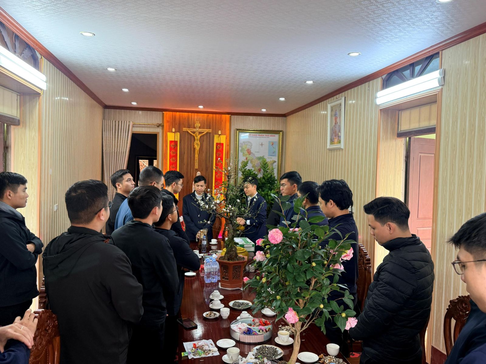 Sáng thứ Tư, trong tiết trời se lạnh, anh em chủng sinh đã quy tụ về nhà xứ Trung Đồng và được cha Chánh xứ Đa Minh Bùi Thế Truyền ân cần tiếp đón. Trong bầu khí thân tình của những ngày cuối năm, cha và quý thầy trao nhau những lời chúc sức khỏe, bình an nhân dịp năm mới sắp về. Cha Đa Minh bày tỏ niềm vui khi được đón tiếp anh em, đồng thời khích lệ các thầy kiên trì trên con đường tu tập, trung thành với ơn gọi đã lãnh nhận, và tiếp tục phục vụ Giáo Hội trong niềm vui của Chúa.