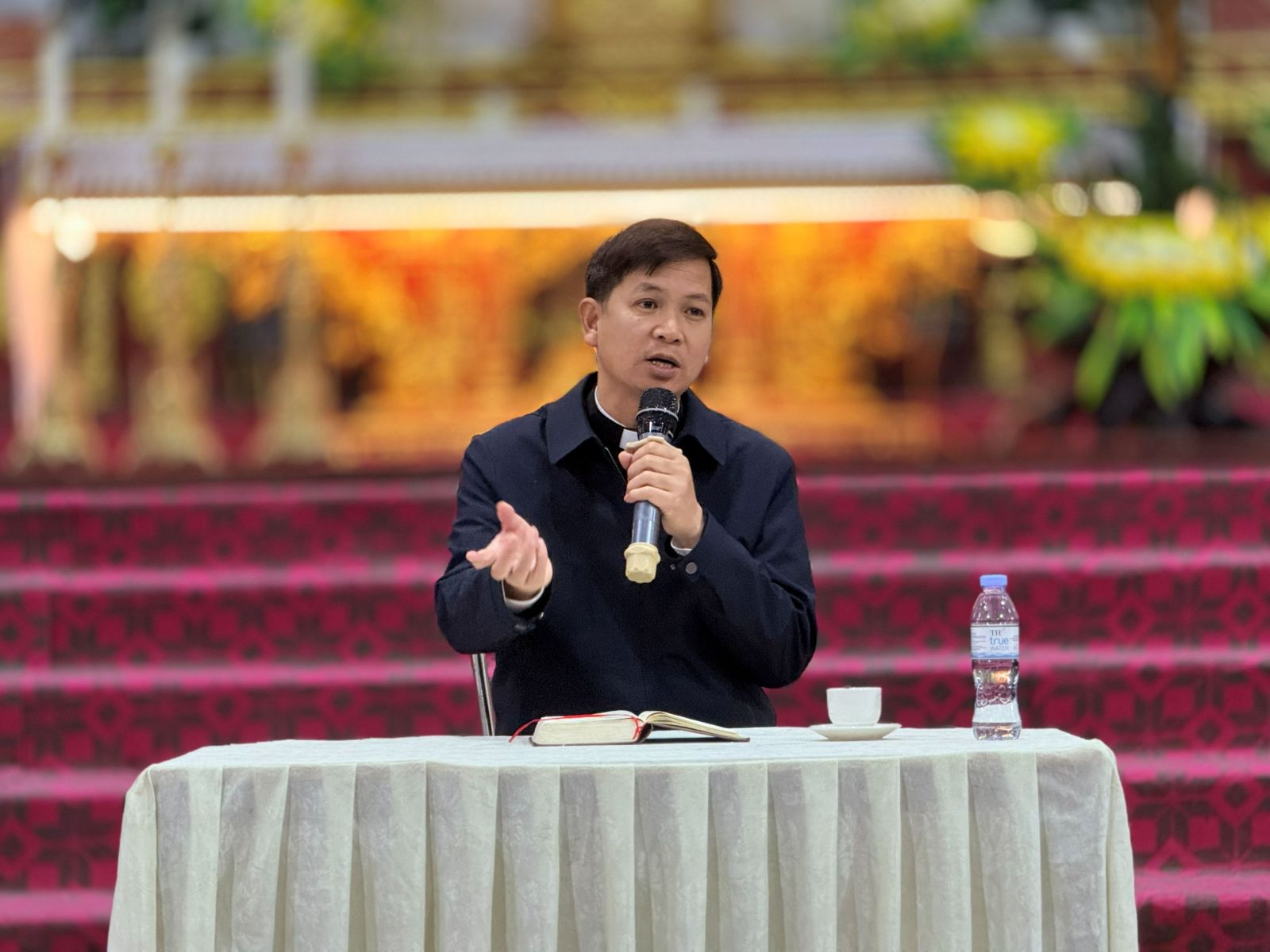 Trong bài giảng, cha Đa Minh đã chia sẻ Lời Chúa dựa trên bài đọc sách Samuen quyển thứ hai (2Sm 24,2.9–17), thuật lại biến cố vua Đavít kiểm tra dân số và hậu quả đau thương phát sinh từ sự kiêu ngạo và cậy dựa vào sức riêng của con người. Từ đoạn Kinh Thánh này, cha nhấn mạnh rằng cám dỗ quyền lực và sự tự mãn không chỉ là vấn đề của người xưa, nhưng vẫn luôn là nguy cơ đối với con người hôm nay, đặc biệt là những ai đang thi hành hay chuẩn bị bước vào sứ vụ trong Giáo Hội. Khi con người quên rằng mọi sự đều thuộc về Thiên Chúa, họ dễ rơi vào tâm thế chiếm hữu, phô trương hoặc lạm dụng quyền bính.