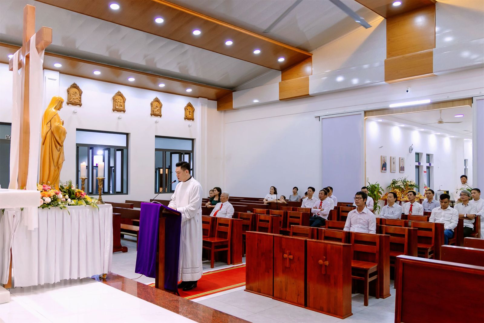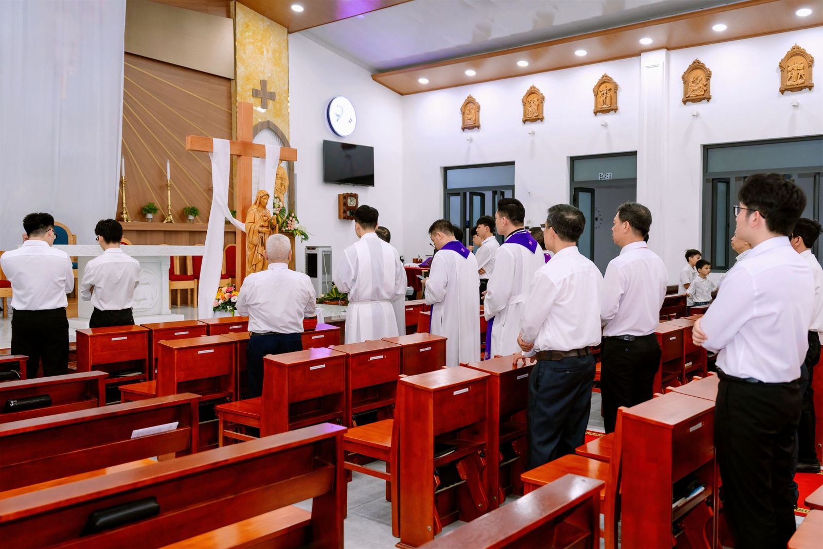 Vào lúc 18g00, ngày 04/4/2026, cộng đoàn cùng Mẹ Maria sốt sắng bước đi qua 14 chặng Đàng Thánh Giá. Mỗi chặng dừng chân là một khoảnh khắc lắng đọng, giúp người tham dự chiêm ngắm cuộc thương khó của Chúa Giêsu và cảm nhận nỗi đau của người Mẹ đứng dưới chân thập giá. Bầu khí thinh lặng, những lời suy niệm sâu sắc và những bước chân chậm rãi đã giúp mỗi người như được chạm đến chiều sâu của tình yêu cứu độ. Con đường thập giá không còn là câu chuyện xa xưa, nhưng trở thành hành trình của chính đời sống hôm nay – nơi mỗi người mang theo những thập giá riêng để hiệp thông với Chúa.