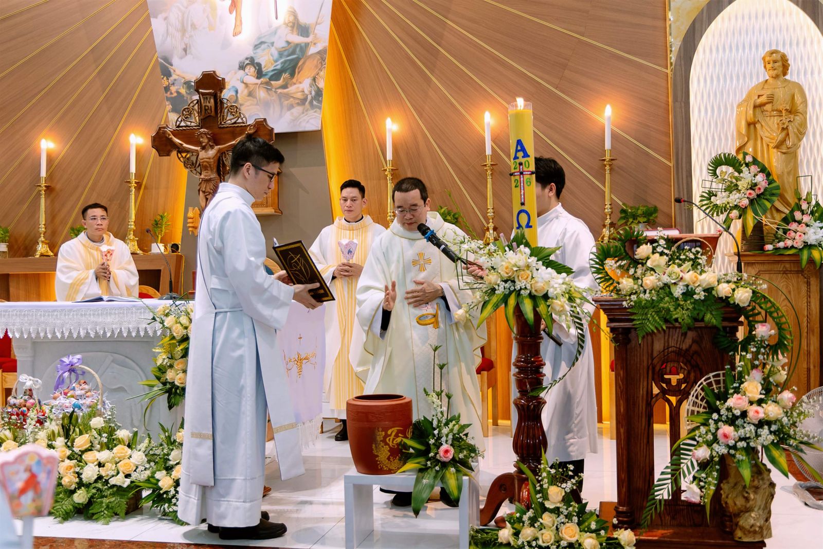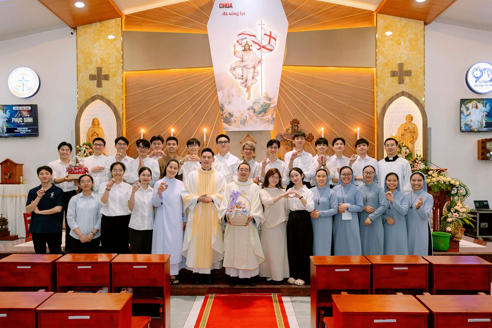 Thánh lễ khép lại trong niềm vui Phục sinh tràn đầy khi quý cha trao tặng những quả trứng Phục sinh cho cộng đoàn – dấu chỉ của sự sống mới và niềm hy vọng. Mỗi quả trứng nhỏ bé nhưng mang theo thông điệp lớn lao: từ ngôi mộ tối tăm đã bừng lên sự sống, từ đêm dài đã xuất hiện bình minh. Cộng đoàn ra về với niềm xác tín rằng ánh sáng Phục sinh vẫn tiếp tục tỏa chiếu trong đời sống thường ngày, nơi mỗi người được mời gọi trở thành chứng nhân của hy vọng và tình yêu.