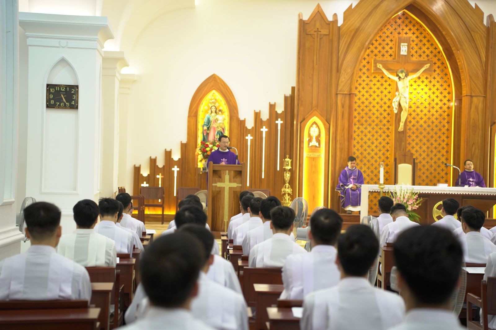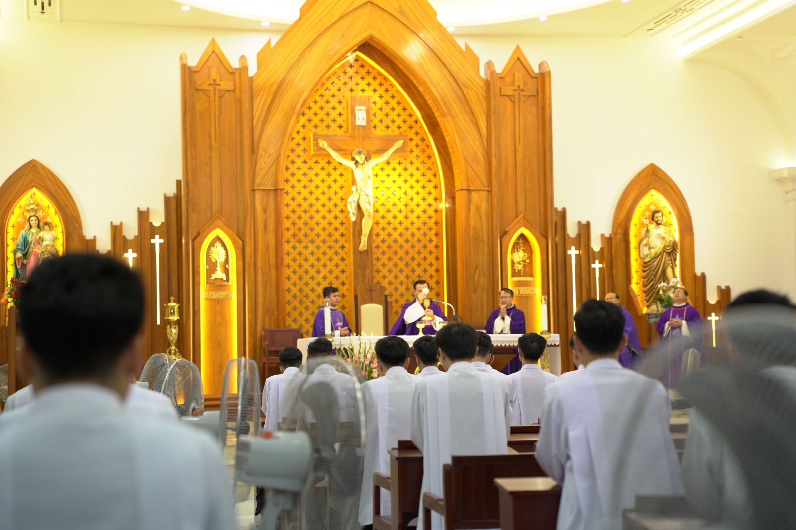 Trong tâm tình ấy, sáng ngày 02/11/2025, quý cha và quý thầy của Đại Chủng viện Thánh Tâm đã hiệp dâng Thánh lễ cầu nguyện cho các linh hồn tại nhà nguyện của Đại Chủng viện, do cha Giám đốc Giu-se Mai Văn Diện chủ tế, vào lúc 05g15. Trong Thánh lễ này, quý thầy chủng sinh đã hiệp ý cùng quý cha dâng lên Thiên Chúa lời cầu nguyện cho các bậc tiền nhân, quý Đức cha, quý cha giáo cùng thân bằng quyến thuộc của quý cha và anh em chủng sinh.