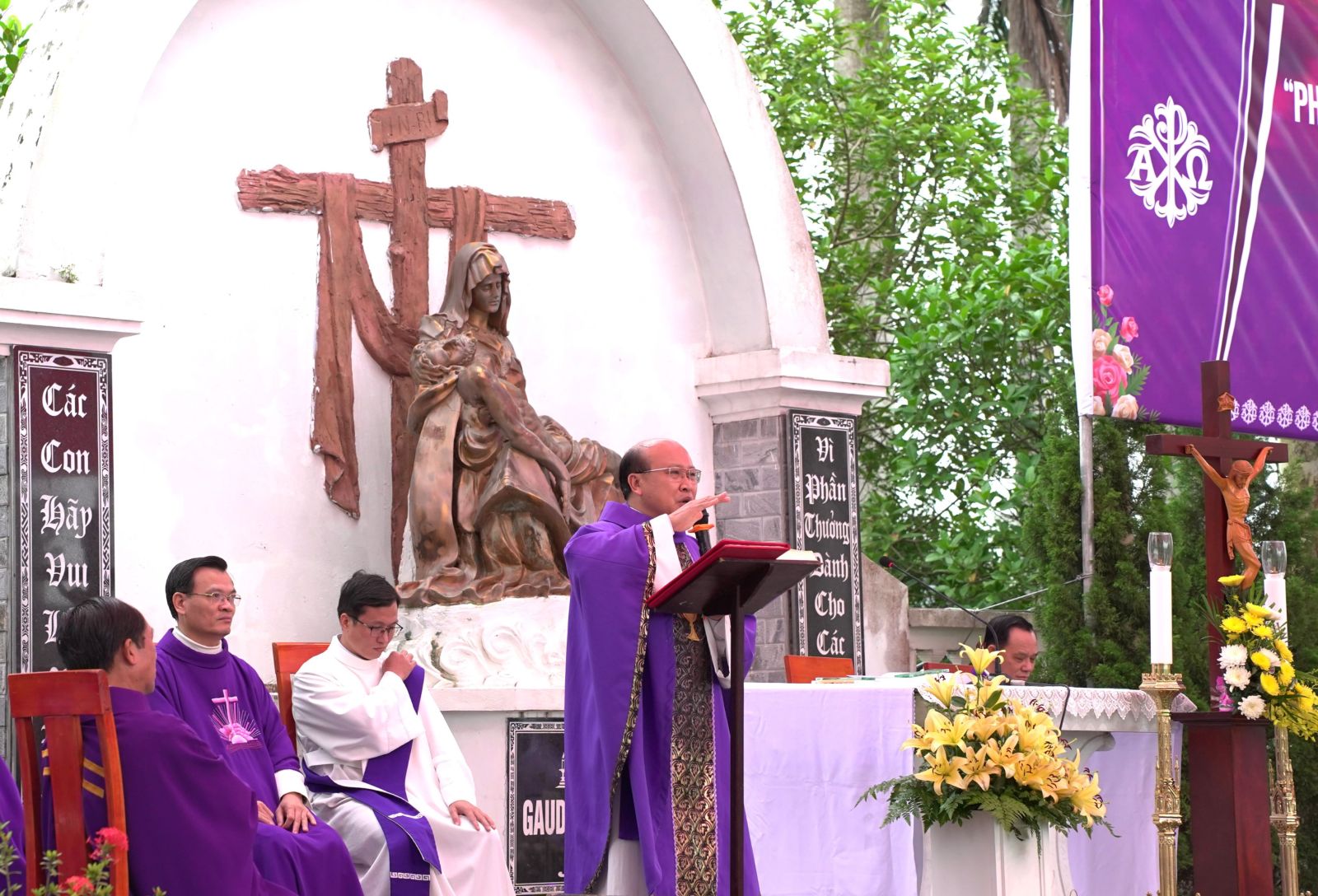 Trong bài giảng, cha Phó Giám đốc Gio-a-kim mời gọi cộng đoàn hướng lòng về tổ tiên và những người đã qua đời, sống mầu nhiệm hiệp thông giữa Giáo hội Lữ Hành, Thanh Luyện và Khải Hoàn. Cha nhấn mạnh đến ý nghĩa của sự thanh luyện, đó là hành trình các linh hồn được tinh luyện để đạt tới hạnh phúc Thiên Đàng, đồng thời khuyến khích mọi người dâng lời cầu nguyện, tâm lực, trí lực, sự hy sinh và bác ái như một cách bám chặt vào Đức Giê-su để cầu cho các linh hồn, không chỉ trong ngày 02/11 mà trong suốt tháng đặc biệt này.
