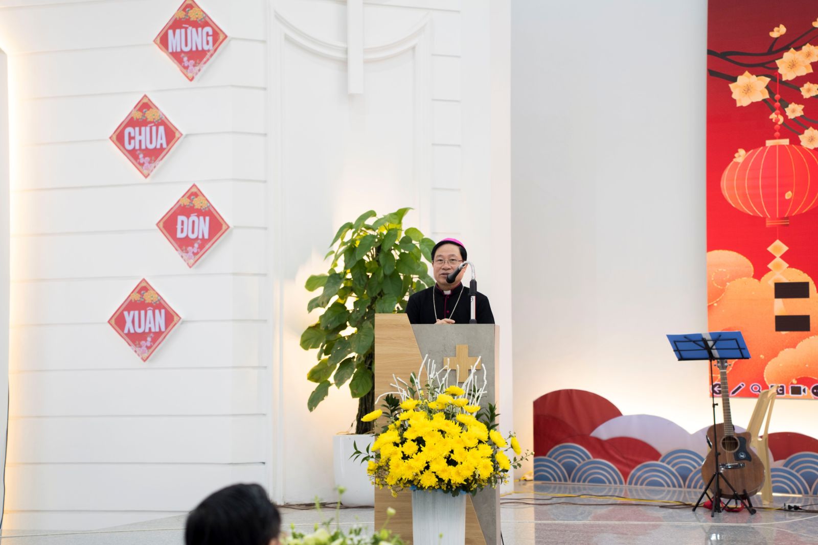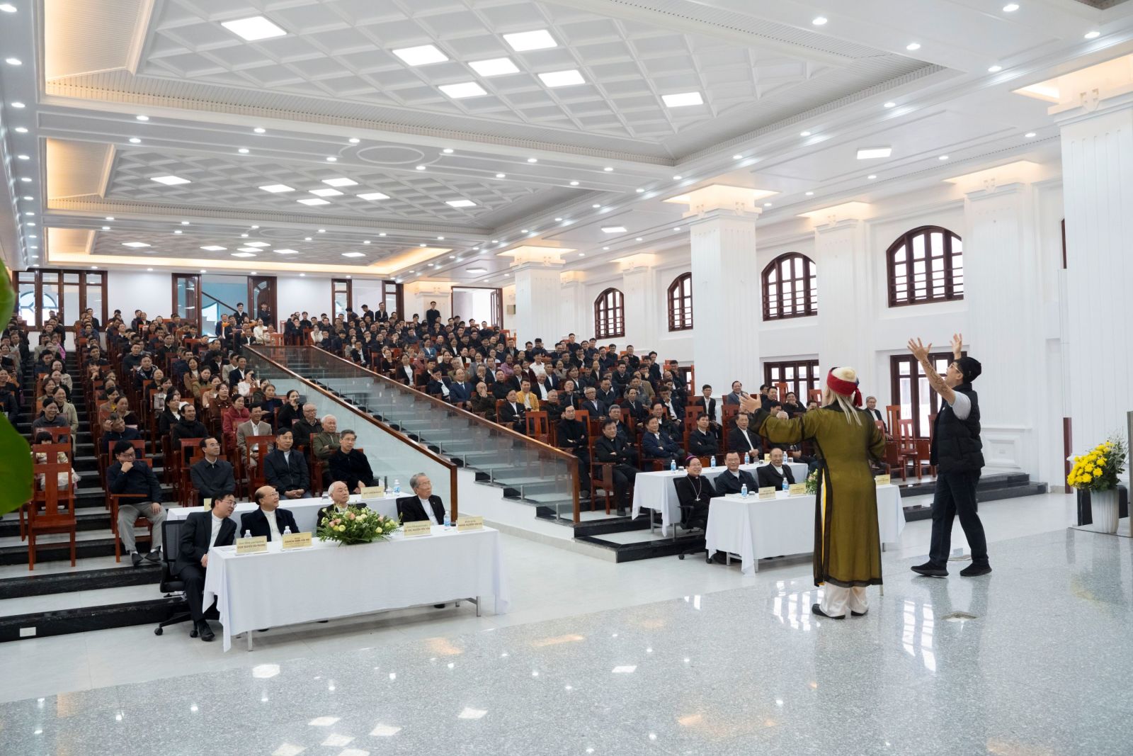 Từ những thông điệp nghệ thuật ấy, Đức cha đã có lời chia sẻ đầy tâm tình. Mượn hình ảnh từ bản Mashup “Xuân này con sẽ về – Tết đong đầy”, ngài gợi nhắc về sự gắn kết gia đình, mời gọi quý ông bà cố tiếp tục đồng hành và làm điểm tựa thiêng liêng cho con em mình. Qua vở chèo “Người cha nhân hậu”, Đức cha nhấn mạnh đến sự kiên nhẫn và bao dung của người cha, khích lệ các bậc phụ huynh luôn yêu thương, cảm thông với con cái trong lựa chọn dâng hiến. Cuối cùng, với bài hát Tâm sĩ ca, Đức cha Đaminh khơi dậy lý tưởng sống quảng đại của người chủng sinh, đồng thời mời gọi gia đình cùng sẻ chia trách nhiệm vun trồng những "mầm non" ơn gọi cho Giáo hội.