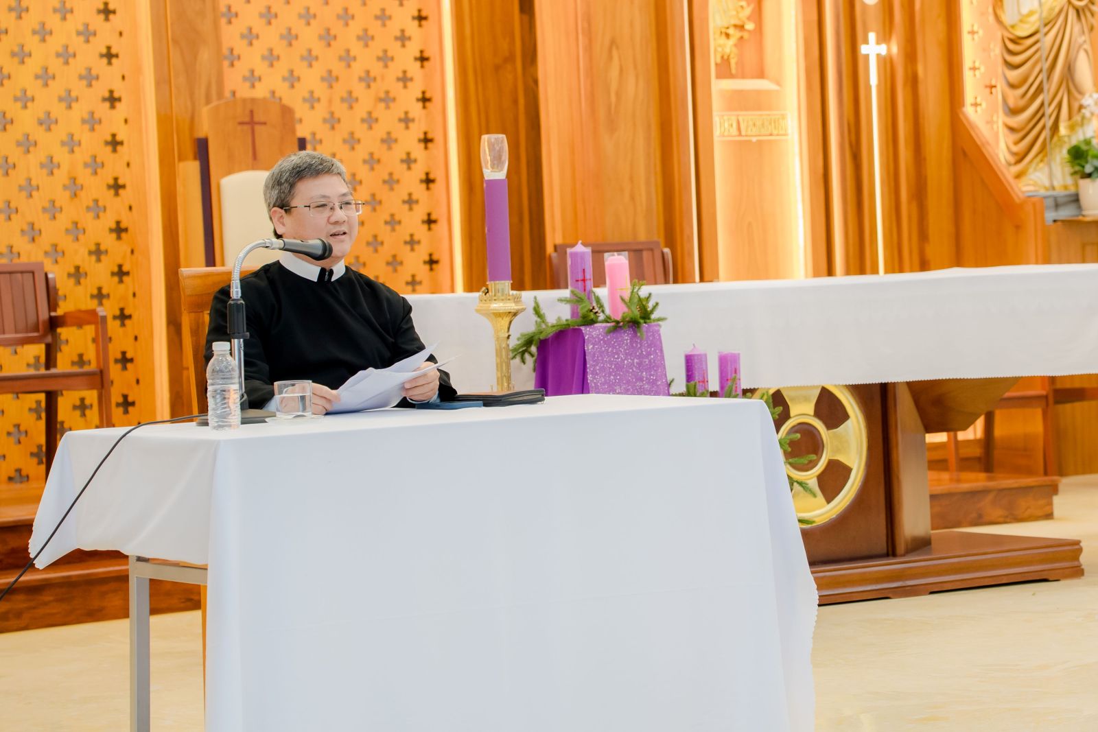 Bước sang ngày thứ Bảy (06/12), anh em chủng sinh bước vào chương trình tĩnh tâm với phần chia sẻ của cha Giuse Phạm Thanh Quang, CSsR. Cha mời gọi các thầy trở về với nhịp sống thiêng liêng của Đức Giêsu, học nơi Người sự gắn bó thân tình với Chúa Cha qua đời sống cầu nguyện và tinh thần sẵn sàng hiến dâng cho sứ vụ. Sau đó, quý thầy lãnh nhận Bí tích Hoà Giải và sốt sắng tham dự Thánh lễ do cha Giuse chủ tế. Đây là giây phút cao điểm của buổi sáng tĩnh tâm, nơi các thầy được gặp gỡ Chúa trong bàn tiệc Lời Chúa và Thánh Thể, kín múc nguồn ân sủng dồi dào cho hành trình ơn gọi.