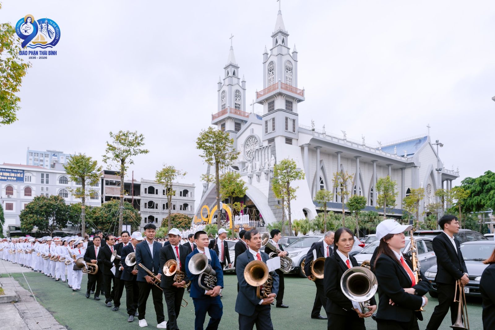 Ngay từ sớm, từng đoàn người đã nô nức tiến về Ngôi Nhà Chung của Giáo phận để hiệp thông trong ngày hồng phúc. Đặc biệt, đại diện các Ban Kim nhạc có mặt từ rất sớm để chuẩn bị cho ngày hội đặc biệt nhân dịp mừng kỷ niệm 90 năm thành lập Giáo phận hôm nay.