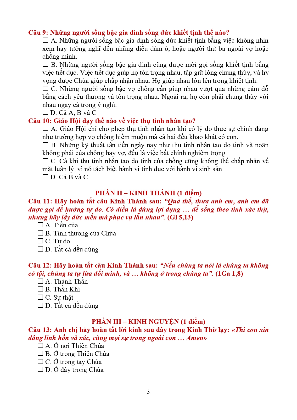 Ban Giáo lý Đức tin Giới thiệu: Đề thi Học kỳ I dành cho Giáo lý viên cấp 3: Mã đề HKI-GLV 303 (Đề số 3)
