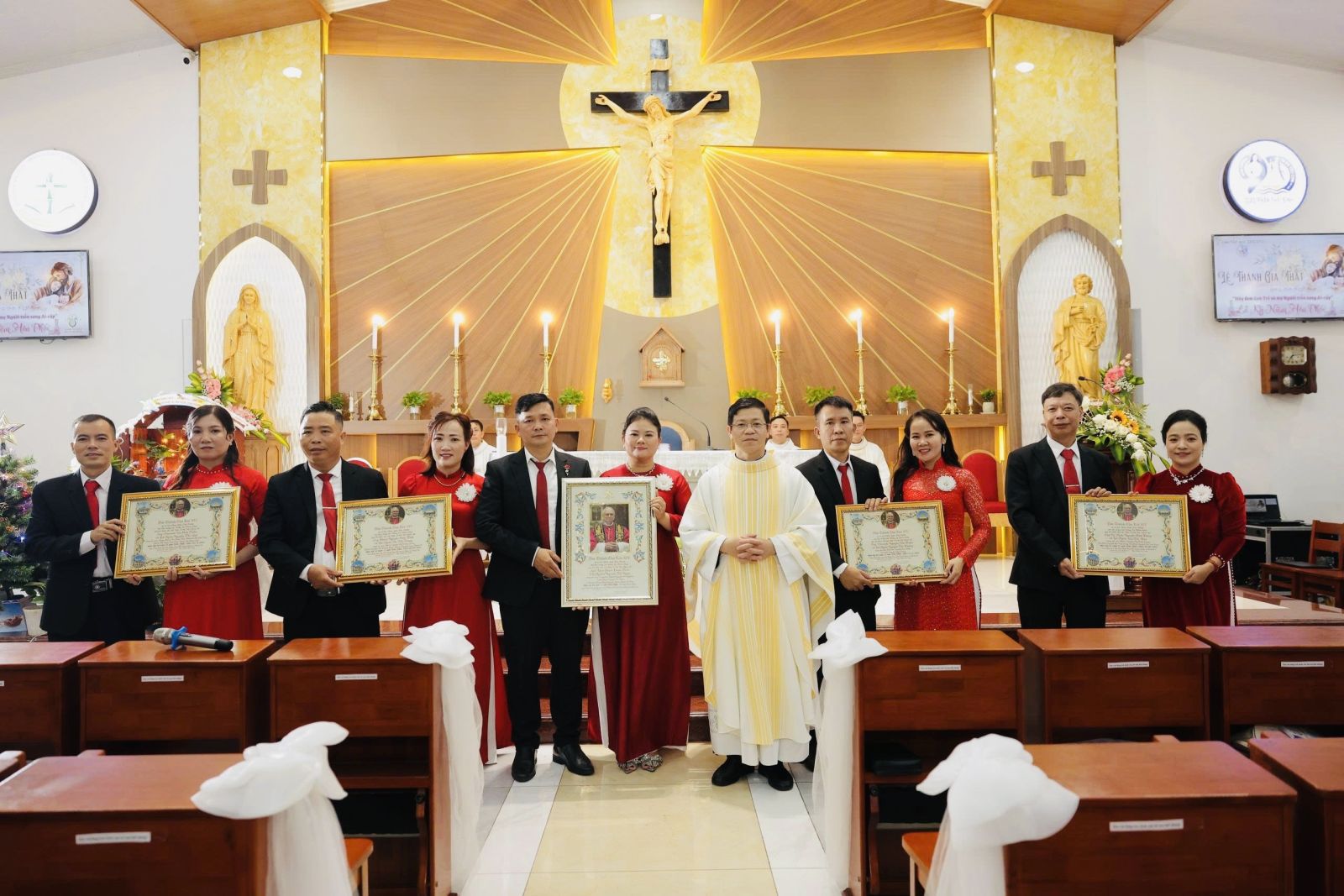 Kết thúc Thánh lễ, các gia đình long trọng đón nhận Phép lành Tòa Thánh của Đức Thánh Cha Lê-ô XIV qua cha chủ tế, cùng những bó hoa tươi thắm và lời chúc mừng đầy yêu thương từ con cái và cộng đoàn. Những khoảnh khắc chụp hình lưu niệm và chia sẻ niềm vui trong tình huynh đệ đã để lại nhiều xúc động, phản chiếu rõ nét hành trình hôn nhân được dệt nên từ yêu thương, hy sinh và ân sủng Chúa.
