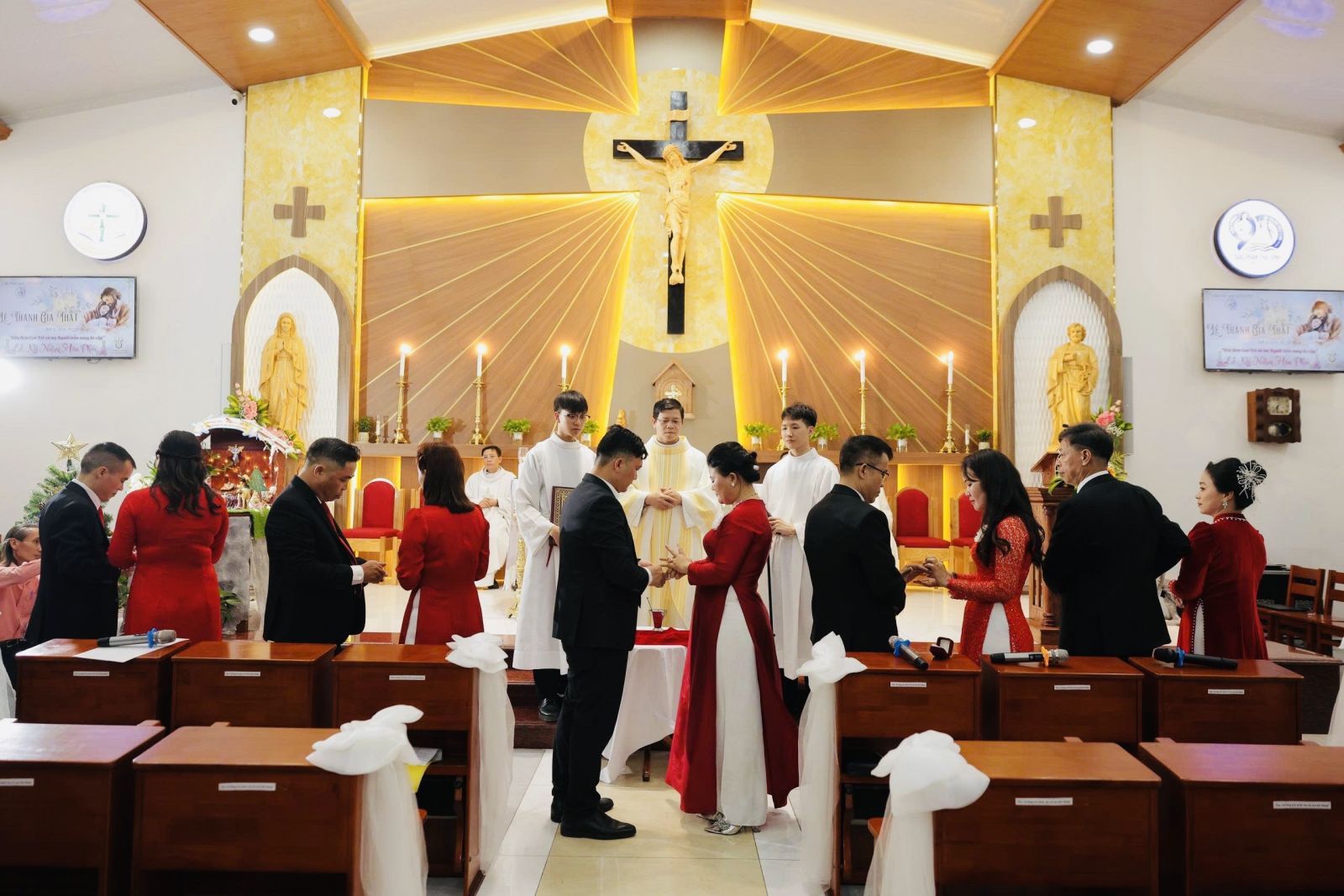 Mở đầu Thánh lễ, cha chủ tế đã nhắc lại lời của Đức Thánh Cha Phanxico trong cuộc gặp gỡ các đôi bạn trẻ tại Dublin năm 2018: “Các gia đình là niềm hy vọng của Giáo Hội và của thế giới.” Lời nhắn gửi ấy như kim chỉ nam cho ý nghĩa của ngày hồng ân hôm nay: gia đình Ki-tô hữu không chỉ là nơi hai con người gắn bó với nhau, mà còn là không gian để tình yêu Thiên Chúa được phản chiếu, là nền tảng nuôi dưỡng đức tin và gieo mầm hy vọng cho xã hội.