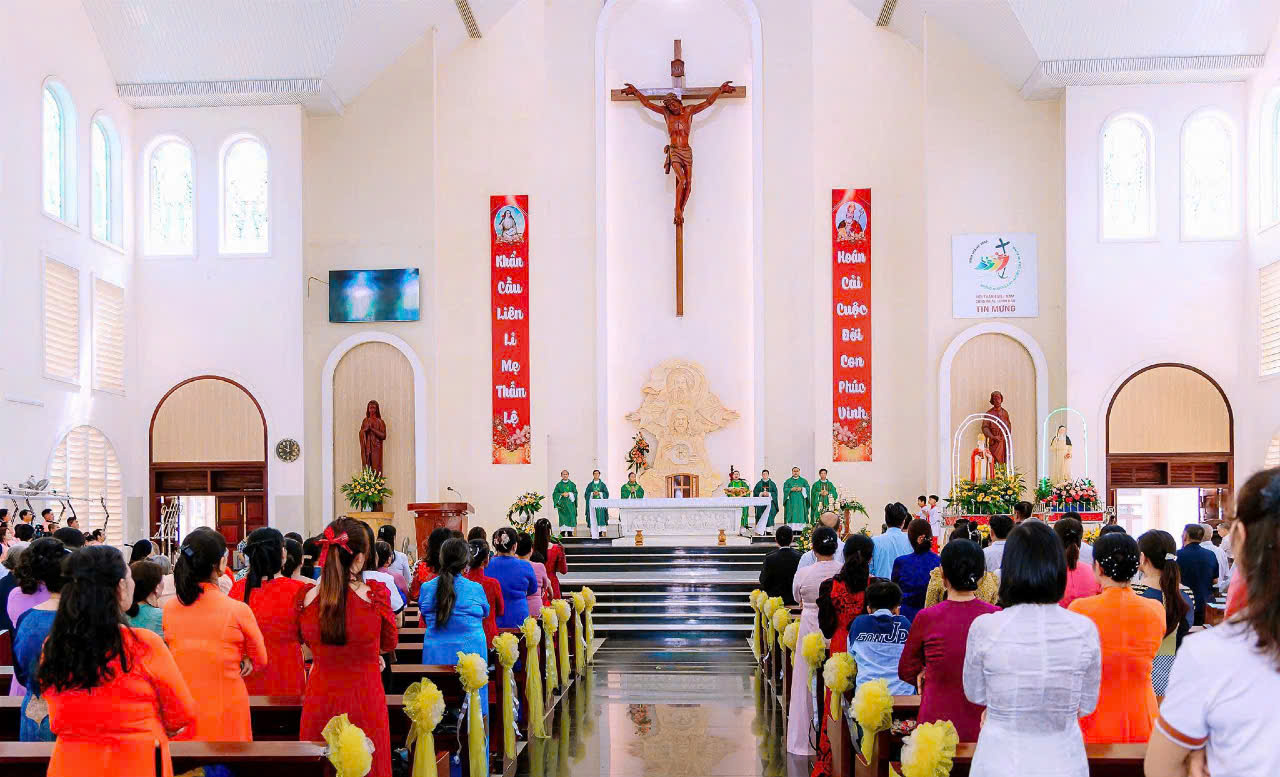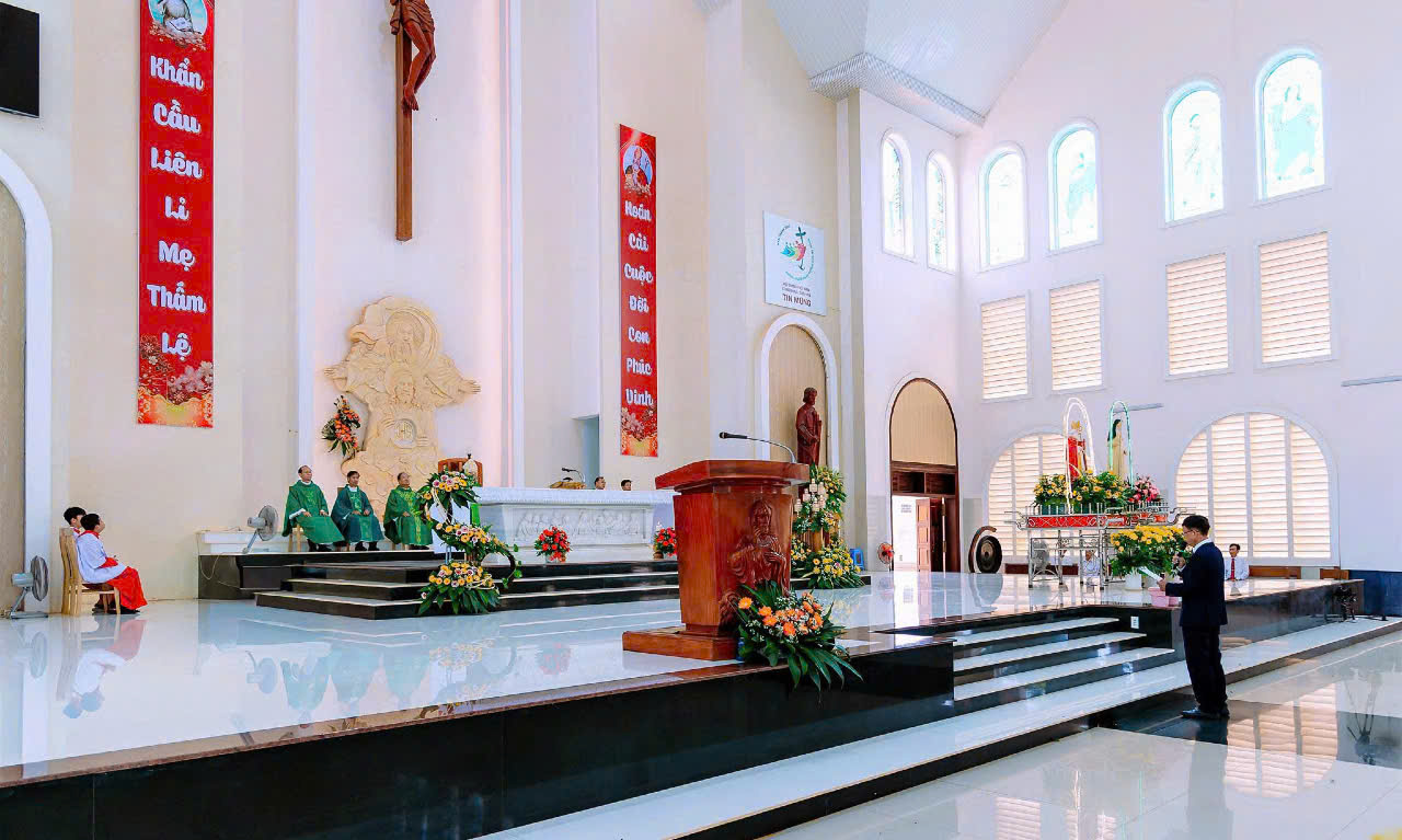 Thánh lễ do Đức Cha Đa-minh Đặng Văn Cầu chủ tế. Đồng tế với Ngài có cha Phê-rô Vê-rô-na Phạm Văn Nhật – Đặc trách Di dân Thái Bình - Miền Nam, cùng sự tham dự của quý tu sĩ, quý khách và cộng đoàn.