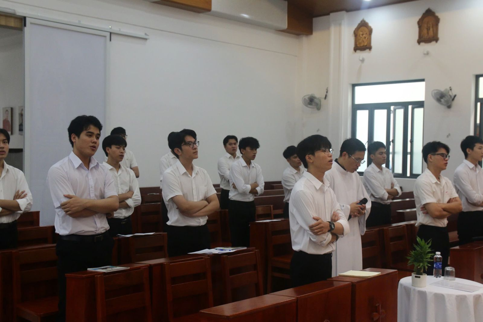 Buổi tĩnh tâm mở đầu bằng cuộc gặp gỡ thân tình của cha Đồng hành Giu-se. Ngài chào mừng những anh em mới gia nhập cộng đoàn, chúc mừng những anh em có ngày sinh trong tháng 11, và đặc biệt nhắc nhớ ý cầu nguyện chung trong tháng, hướng lòng về quê nhà để cùng hiệp thông cầu nguyện với Giáo phận mẹ Thái Bình. Những lời nói chân tình, giản dị mà sâu sắc của cha đã khơi lên nơi anh em cảm thức hiệp nhất – rằng dù đang ở phương Nam, mỗi người vẫn luôn gắn bó và đồng hành trong cùng một gia đình Giáo phận.