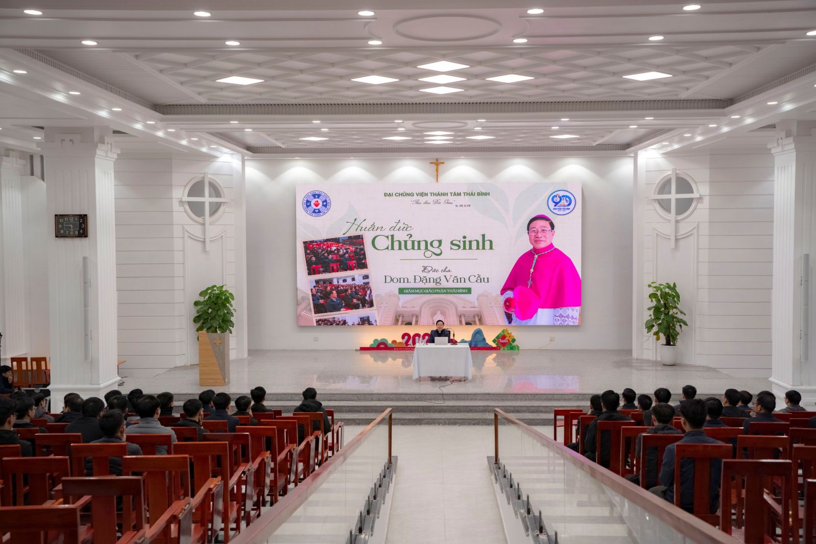 Khởi đi từ ý nghĩa của Tuần cầu nguyện cho sự hiệp nhất các Kitô hữu, Đức cha Đaminh đã chọn chủ đề này làm tâm điểm xuyên suốt buổi huấn đức. Đức cha mời gọi anh em chủng sinh ý thức sâu xa hơn về ơn gọi và trách nhiệm cầu nguyện cho công cuộc hiệp nhất. Đức cha nhấn mạnh rằng, hiệp nhất không chỉ là một khẩu hiệu hay ước mong xa vời, nhưng trước hết phải là sự hiệp thông với Thiên Chúa và với anh em, vốn được nuôi dưỡng từ chính đời sống hiệp nguyện. Từ thao thức mục vụ ấy, Đức cha mời gọi anh em cầu nguyện cách đặc biệt cho những nỗ lực đối thoại và gặp gỡ đại kết giữa Giáo hội Công Giáo với anh em Kitô hữu thuộc các hệ phái khác nhau. Cách riêng, Đức cha mời gọi các chủng sinh cầu nguyện cho Giáo hội tại Việt Nam để giữa những khác biệt và thách đố, mọi thành phần Dân Chúa luôn hiệp nhất trong cùng một đức tin và niềm hy vọng nơi Đức Kitô.