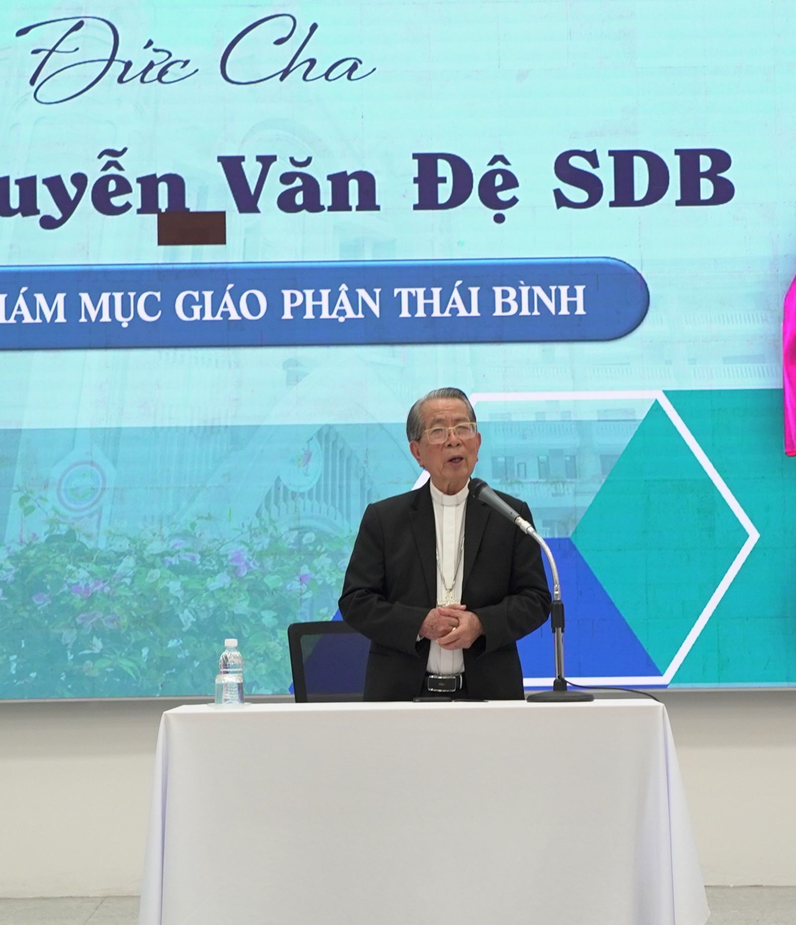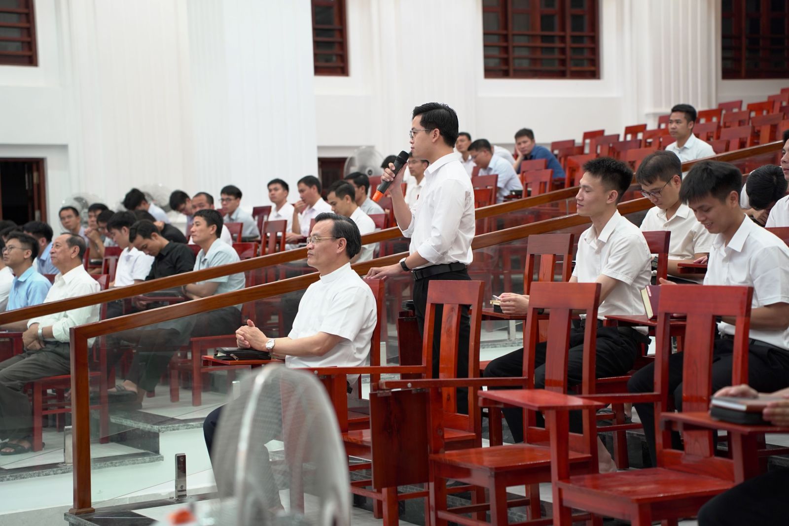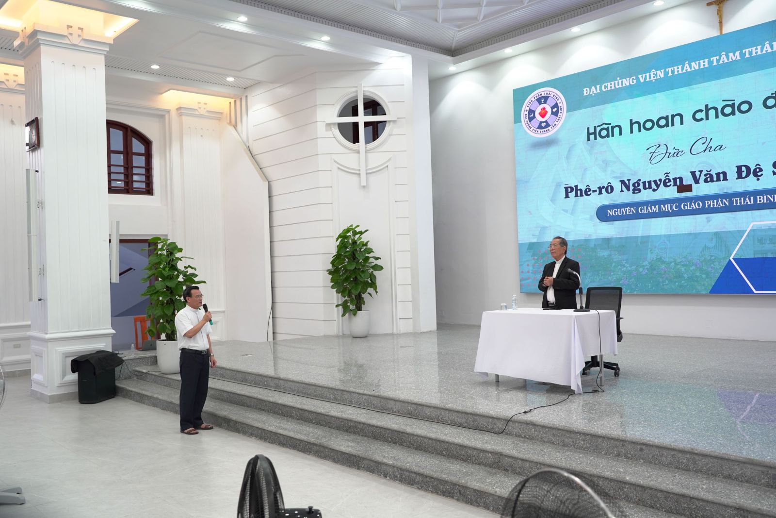 Trước khi bước vào giờ huấn đức, cha Giám đốc Giu-se Mai Văn Diện chào mừng và bày tỏ lòng biết ơn sâu sắc đến Đức cha Phê-rô vì sự quan tâm đặc biệt của đức cha dành cho Đại Chủng viện. Trong suốt thời gian thi hành sứ vụ, Đức cha là vị mục tử đã để lại nhiều dấu ấn sâu đậm: chính Đức cha đã khởi xướng việc tái lập Chủng viện sau nhiều năm gián đoạn, trực tiếp quan tâm xây dựng cơ sở vật chất và tạo điều kiện để công cuộc đào tạo được ổn định, phát triển. Khi còn trong trách vụ Chủ chăn Giáo phận, Đức cha luôn đồng hành, khích lệ và nâng đỡ hành trình ơn gọi của nhiều thế hệ chủng sinh.