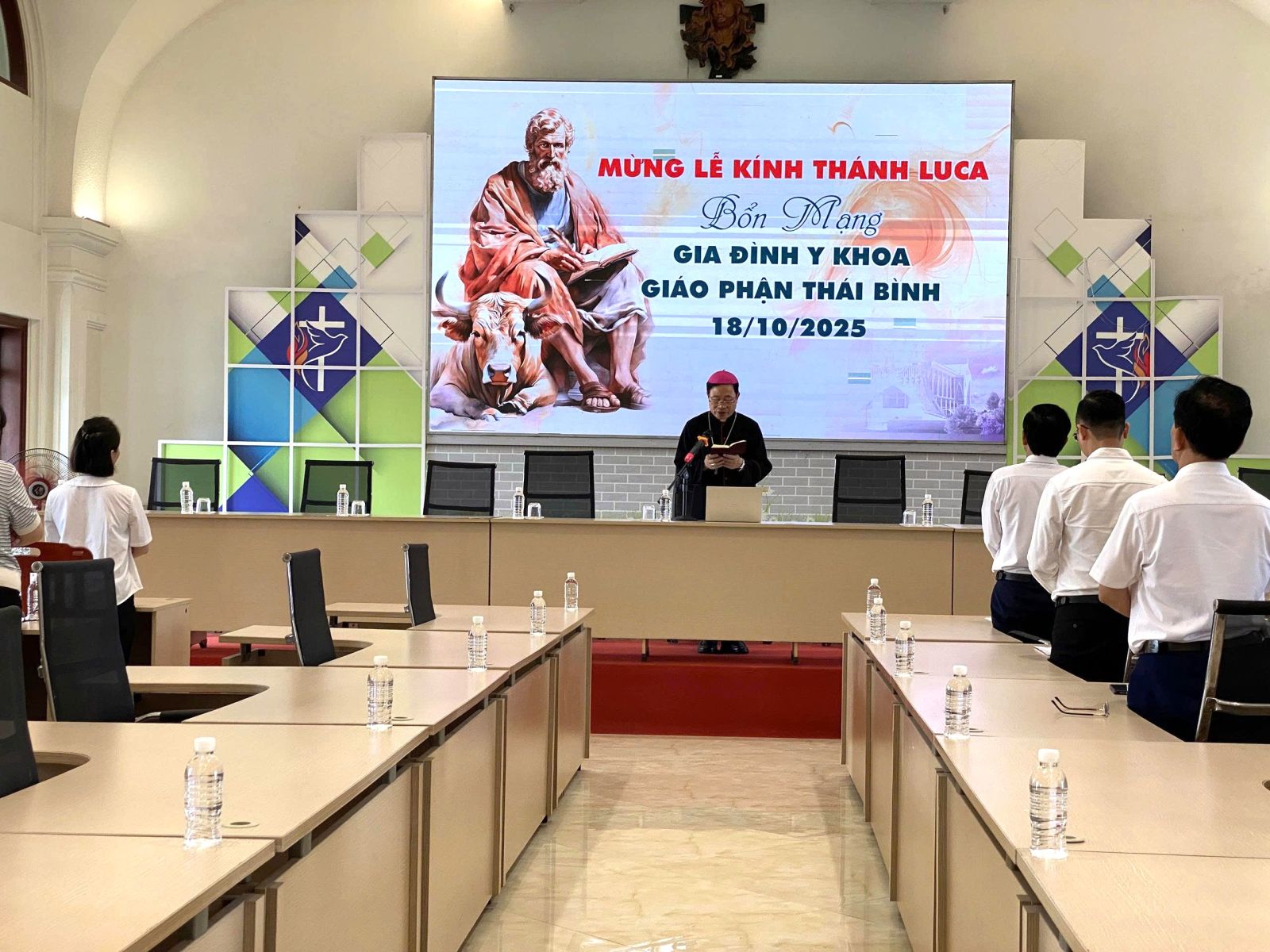 Hiện diện, đồng hành, chia sẻ, khích lệ và chung chia niềm vui cùng gia đình y khoa trong ngày mừng kính thánh Lu-ca – người thầy thuốc và chứng tá của Tin Mừng, có Đức cha Đa-minh Đặng Văn Cầu – vị cha chung của Giáo phận, cha Gio-an Chu Văn Yên - linh hướng, quý cha, quý dì, quý thầy, đại diện các bạn sinh viên trường Đại học Y dược Thái Bình. Đặc biệt là có khoảng 60 y bác sĩ, dược sĩ Công Giáo đang làm việc tại khu vực địa phận Thái Bình.