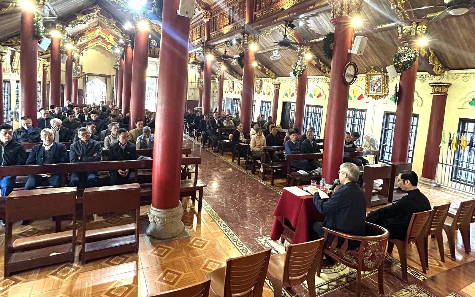 Tiếp đến, Cha Đa-minh Vũ Minh Trí, Quản hạt giáo hạt Tây Hưng Yên phổ biến những điểm chính trong Thư Chung của HĐGMVN năm 2025. HĐGMVN đã đề ra chương trình mục vụ cho 3 năm tới, mỗi năm một chủ đề: