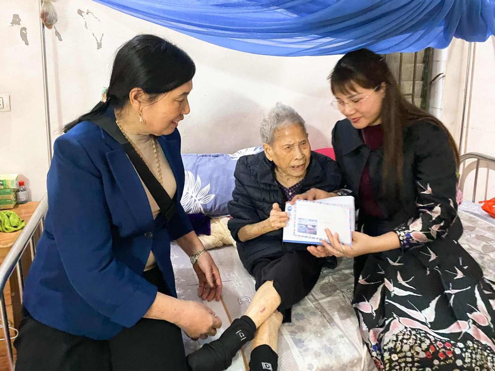 Sau đó, quý cha, quý thầy, quý dì và quý ân nhân tiếp tục đến thăm, chúc Tết và trao quà xuân cùng lì xì cho những bệnh nhân nặng không thể tham dự buổi họp mặt đầu xuân tại tư gia.