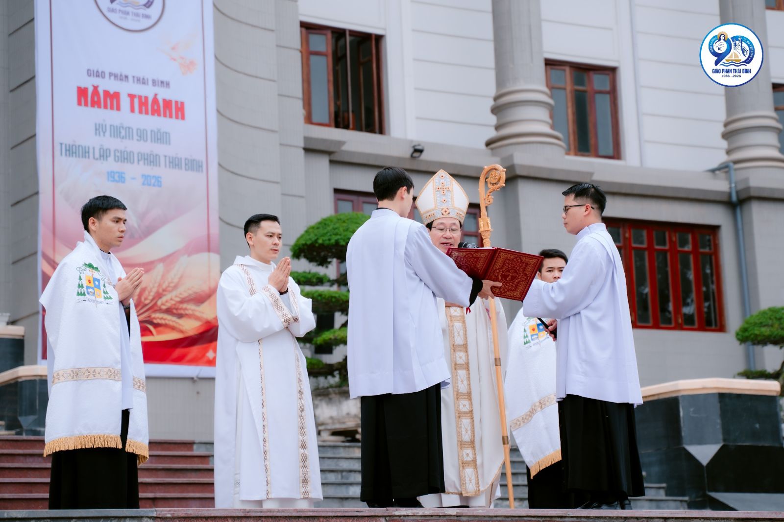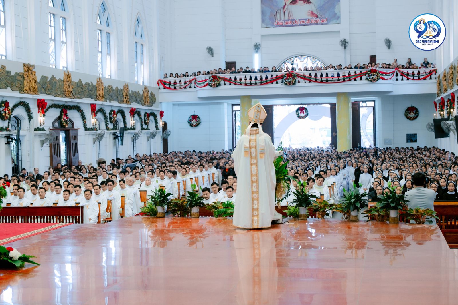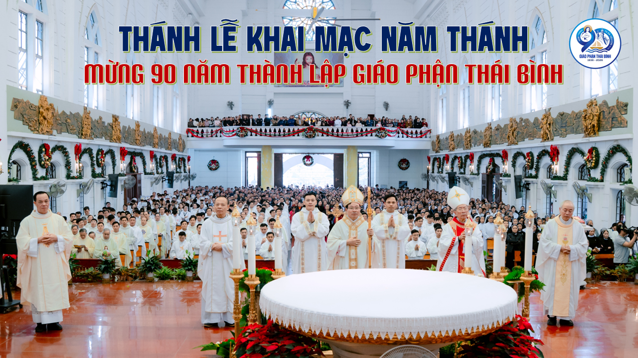 Trong bối cảnh khai mạc Năm Thánh, trước bài ca nhập lễ, cộng đoàn cùng hồi tưởng lịch sử hình thành và phát triển của Giáo phận Thái Bình, từ những ngày vị thừa sai đầu tiên đặt chân lên mảnh đất Bồ Trang (nay thuộc Giáo xứ Bồ Ngọc) cho tới ngày Giáo phận được tách ra từ Giáo phận Mẹ Bùi Chu năm 1936. Trải qua 90 năm, Giáo phận đã lớn lên từ hạt giống Tin Mừng được gieo vãi bằng biết bao hy sinh âm thầm của các thế hệ mục tử, tu sĩ và giáo dân. Hành trình ấy không thiếu những gian nan, vất vả, những hiểu lầm và cười chê, nhưng chính trong những thử thách ấy, ân sủng và sự quan phòng của Thiên Chúa vẫn luôn hiện diện và dẫn dắt Giáo phận vững bước trên con đường loan báo Tin Mừng. Chính vì thế, Năm Thánh được cử hành như một thời gian ân sủng đặc biệt, mời gọi toàn thể Dân Chúa dâng lời tạ ơn và kín múc ơn thánh Chúa, để nhìn lại quá khứ với lòng tri ân sâu xa, sống hiện tại với tâm tình tin yêu và lòng bác ái, hướng về tương lai với niềm hy vọng mới.