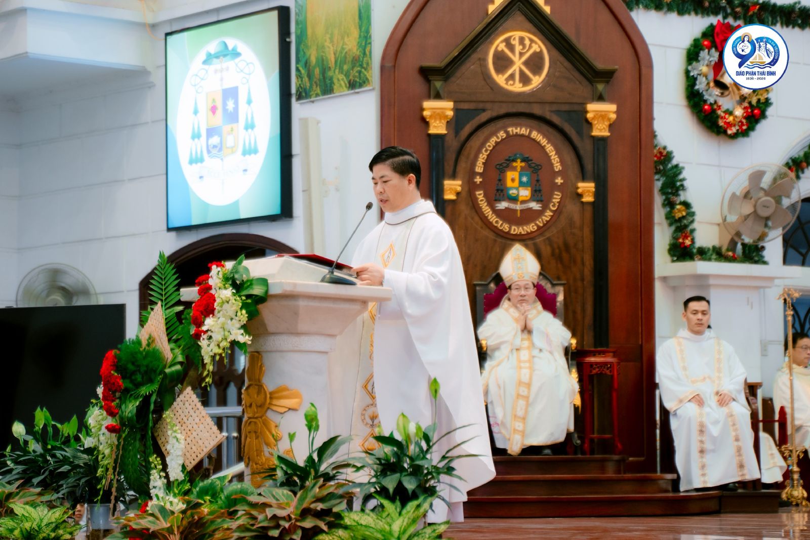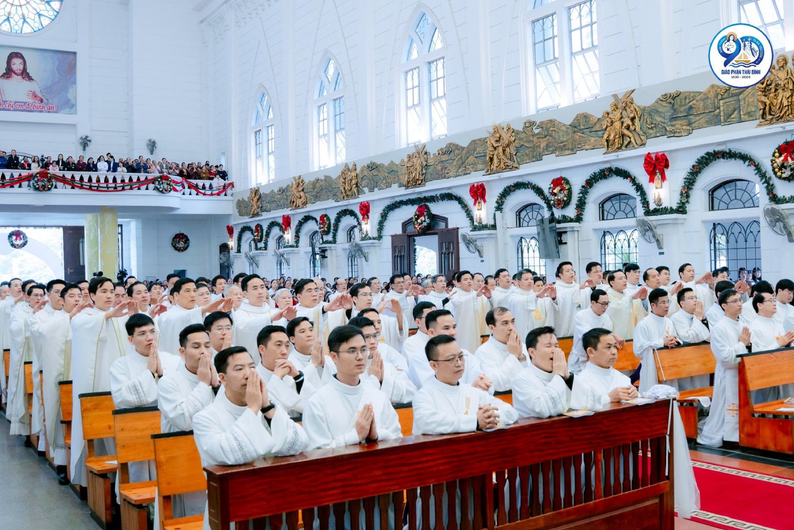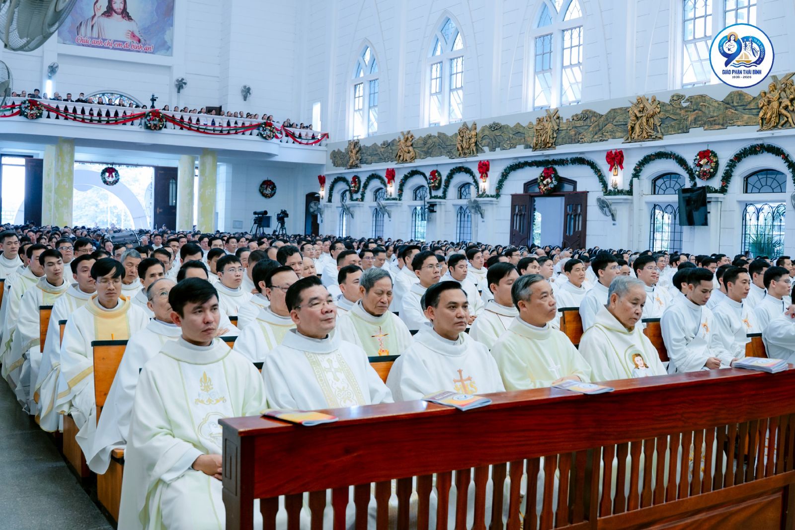 Trong bối cảnh khai mạc Năm Thánh, trước bài ca nhập lễ, cộng đoàn cùng hồi tưởng lịch sử hình thành và phát triển của Giáo phận Thái Bình, từ những ngày vị thừa sai đầu tiên đặt chân lên mảnh đất Bồ Trang (nay thuộc Giáo xứ Bồ Ngọc) cho tới ngày Giáo phận được tách ra từ Giáo phận Mẹ Bùi Chu năm 1936. Trải qua 90 năm, Giáo phận đã lớn lên từ hạt giống Tin Mừng được gieo vãi bằng biết bao hy sinh âm thầm của các thế hệ mục tử, tu sĩ và giáo dân. Hành trình ấy không thiếu những gian nan, vất vả, những hiểu lầm và cười chê, nhưng chính trong những thử thách ấy, ân sủng và sự quan phòng của Thiên Chúa vẫn luôn hiện diện và dẫn dắt Giáo phận vững bước trên con đường loan báo Tin Mừng. Chính vì thế, Năm Thánh được cử hành như một thời gian ân sủng đặc biệt, mời gọi toàn thể Dân Chúa dâng lời tạ ơn và kín múc ơn thánh Chúa, để nhìn lại quá khứ với lòng tri ân sâu xa, sống hiện tại với tâm tình tin yêu và lòng bác ái, hướng về tương lai với niềm hy vọng mới.
