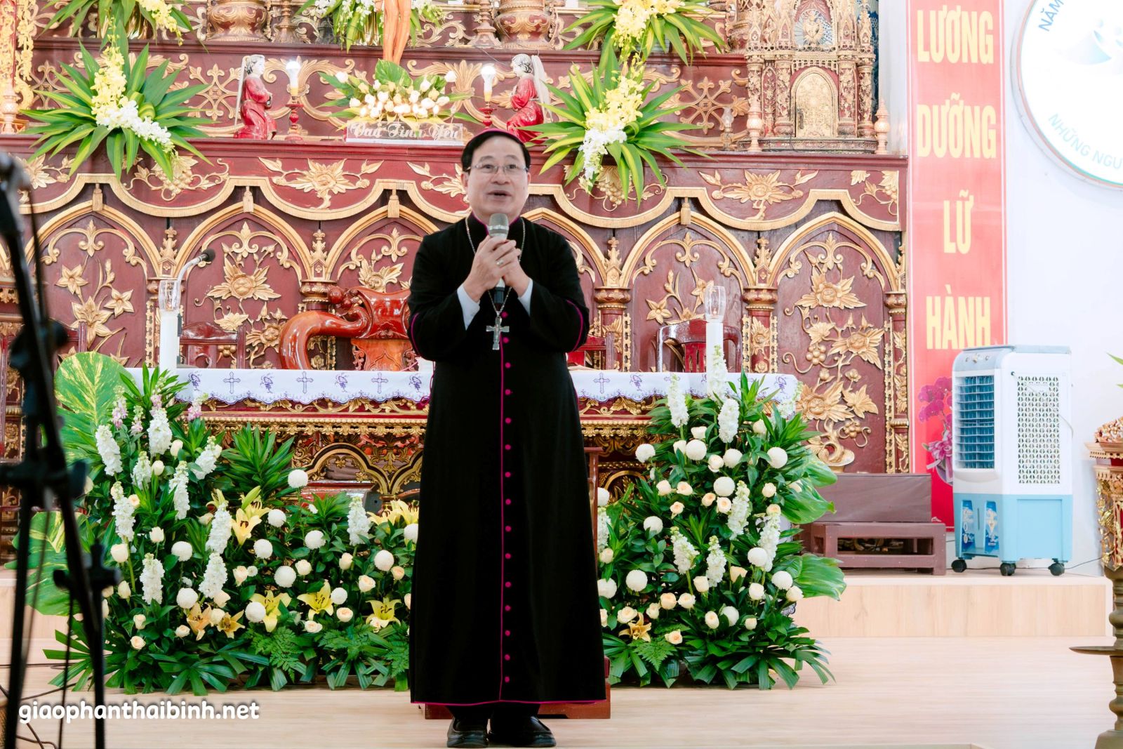 Trong lời mở đầu Thánh lễ, Đức cha Đa-minh chúc mừng Giáo xứ Bơn Làng nhân dịp giáo xứ tổ chức sự kiện trọng đại, tạ ơn Chúa vì tất cả những hồng phúc lớn lao Người đã thương ban trên giáo xứ, và cầu xin Chúa tiếp tục tuôn đổ nhiều ơn lành xuống trên từng người, từng gia đình giúp cho giáo xứ ngày thăng tiến hơn.