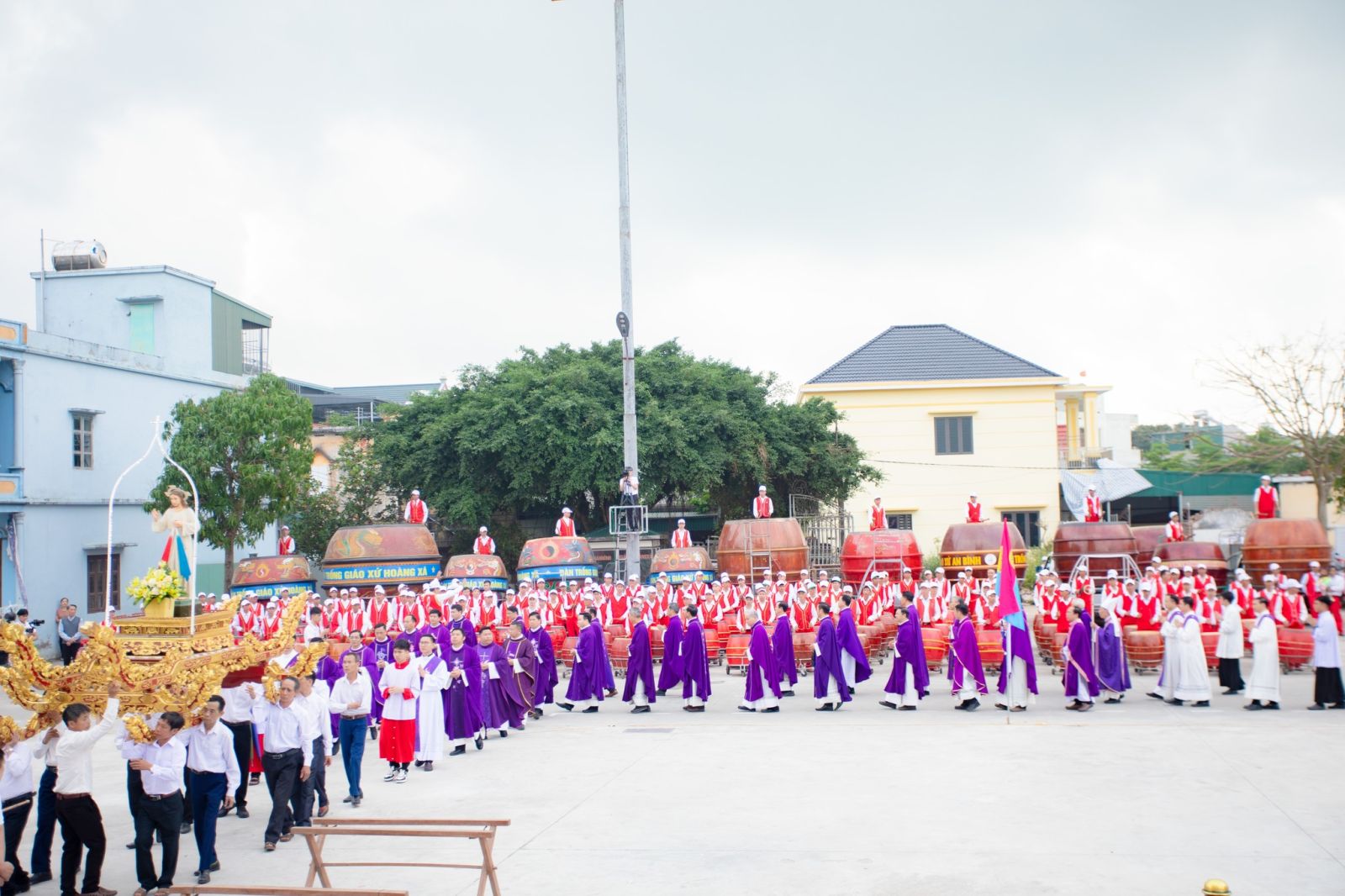 Thứ Bảy (ngày 21/3): Nghi thức rước đoàn đồng tế và Thánh lễ được cử hành long trọng, mở ra cao điểm của Tuần Chầu. Sau Thánh lễ là nghi thức rước kiệu Chúa Giêsu Thánh Thể diễn ra trong bầu khí trang nghiêm và sốt sắng. Từng bước kiệu chậm rãi đi qua các nhà tạm, các cung đường thân quen của quê hương Hoàng Xá, như mang chính sự hiện diện của Chúa đến với từng gia đình, từng ngõ xóm. Những lời kinh, tiếng hát hòa quyện, vang lên giữa không gian, như lời tuyên xưng đức tin sống động của một cộng đoàn đã được nuôi dưỡng qua bao thế hệ.