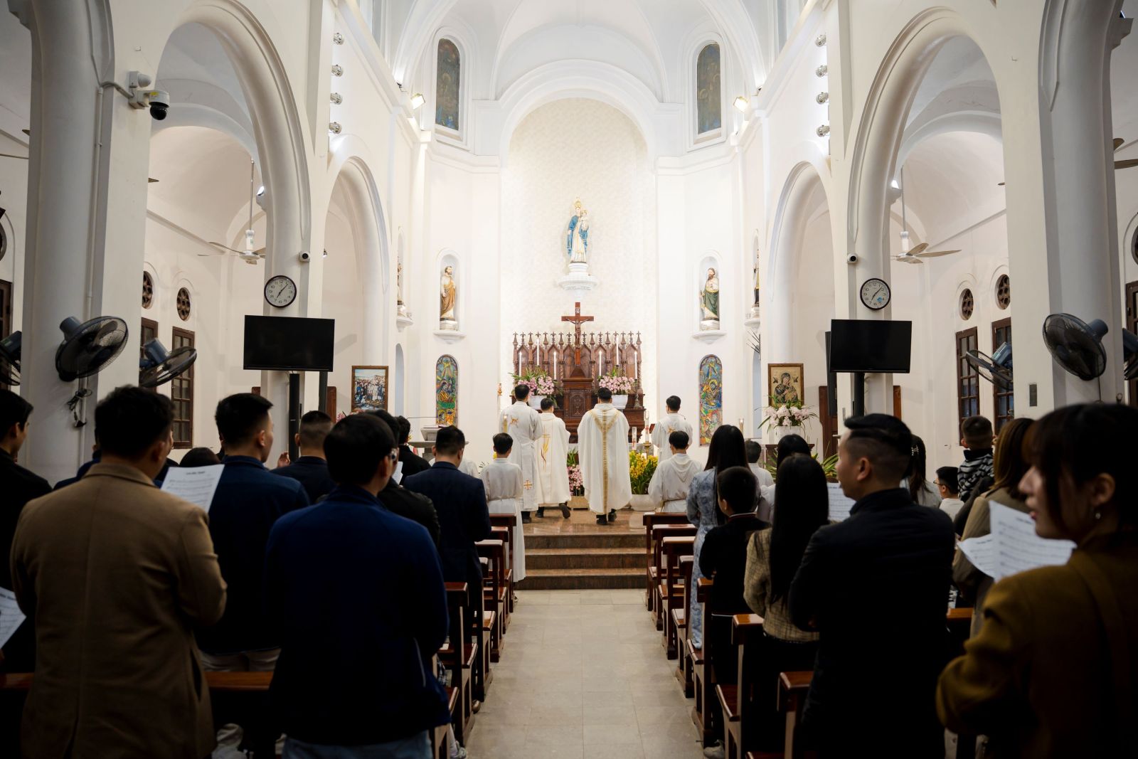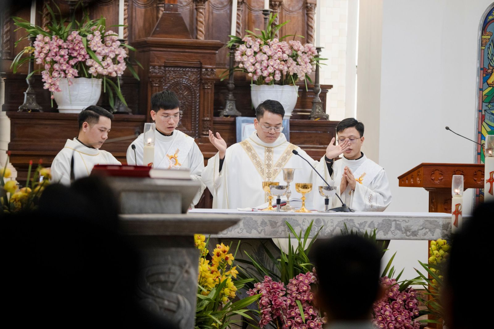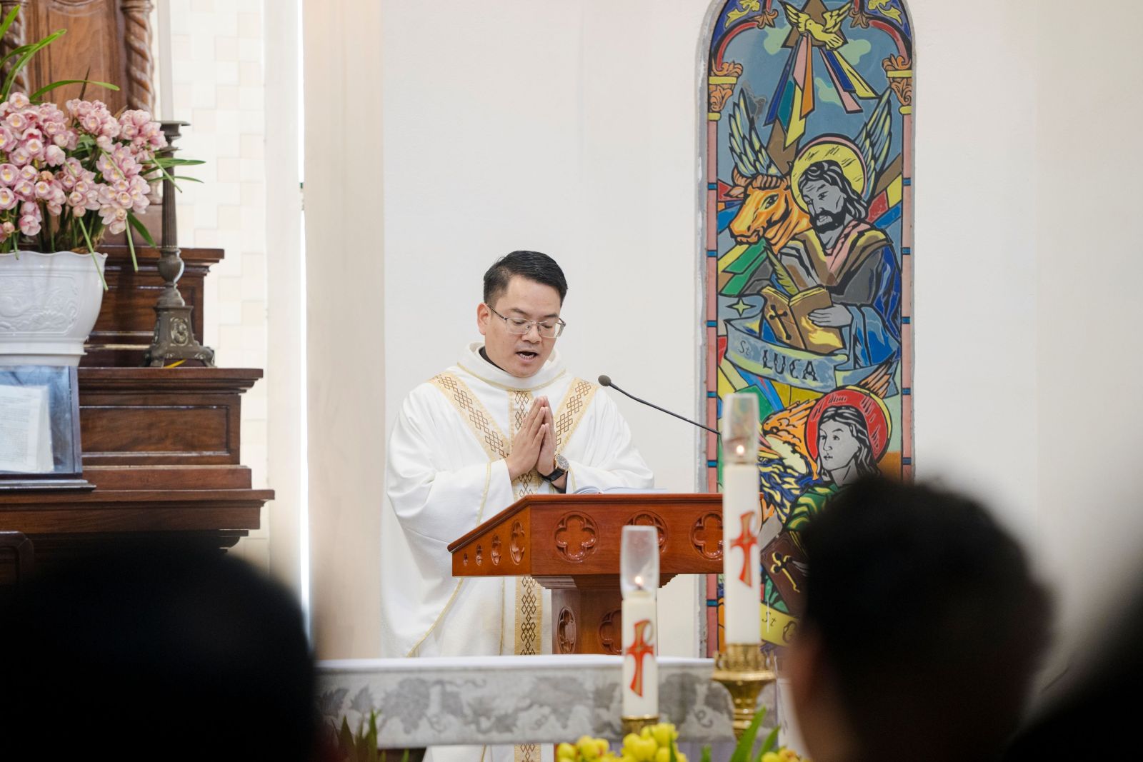 Đúng 19g00, Thánh lễ Tất niên được long trọng cử hành do cha Đaminh Vũ Văn Động chủ tế. Đồng tế trong Thánh lễ có cha Đaminh - Đặc trách Di dân và sự hiệp thông của quý thầy phó tế, đông đảo anh chị em cựu Sinh viên cùng cộng đoàn.