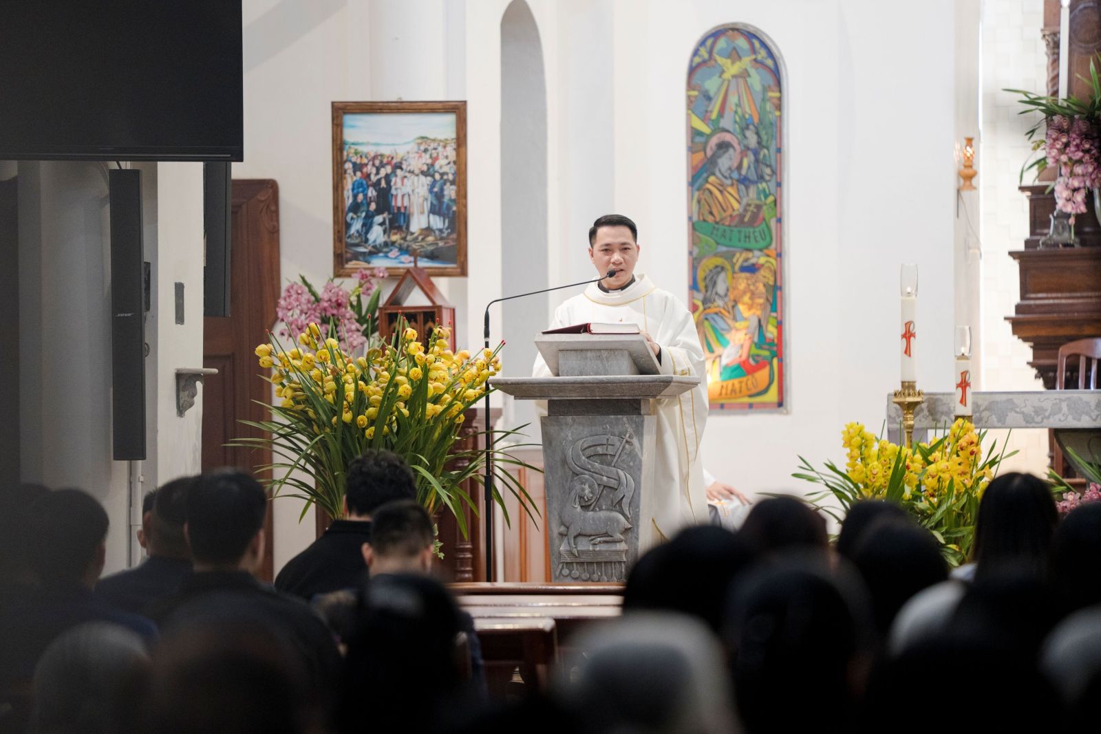 Trong bài chia sẻ Lời Chúa, cha Đaminh đã mời gọi cộng đoàn dâng lời tạ ơn Thiên Chúa vì muôn ơn lành Ngài đã thương ban, đặc biệt là hồng ân bình an trong suốt một năm qua; đồng thời khích lệ mỗi người hãy luôn sống tâm tình tạ ơn, yêu thương và phó thác trong đời sống đức tin, chăm lo cho gia đình giữa muôn vàn khó khăn, thách đố của thời đại.