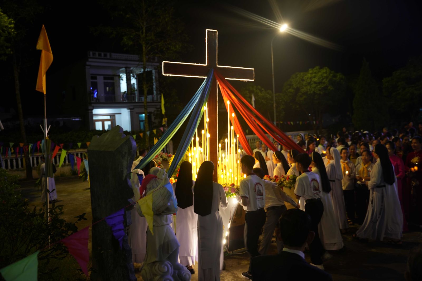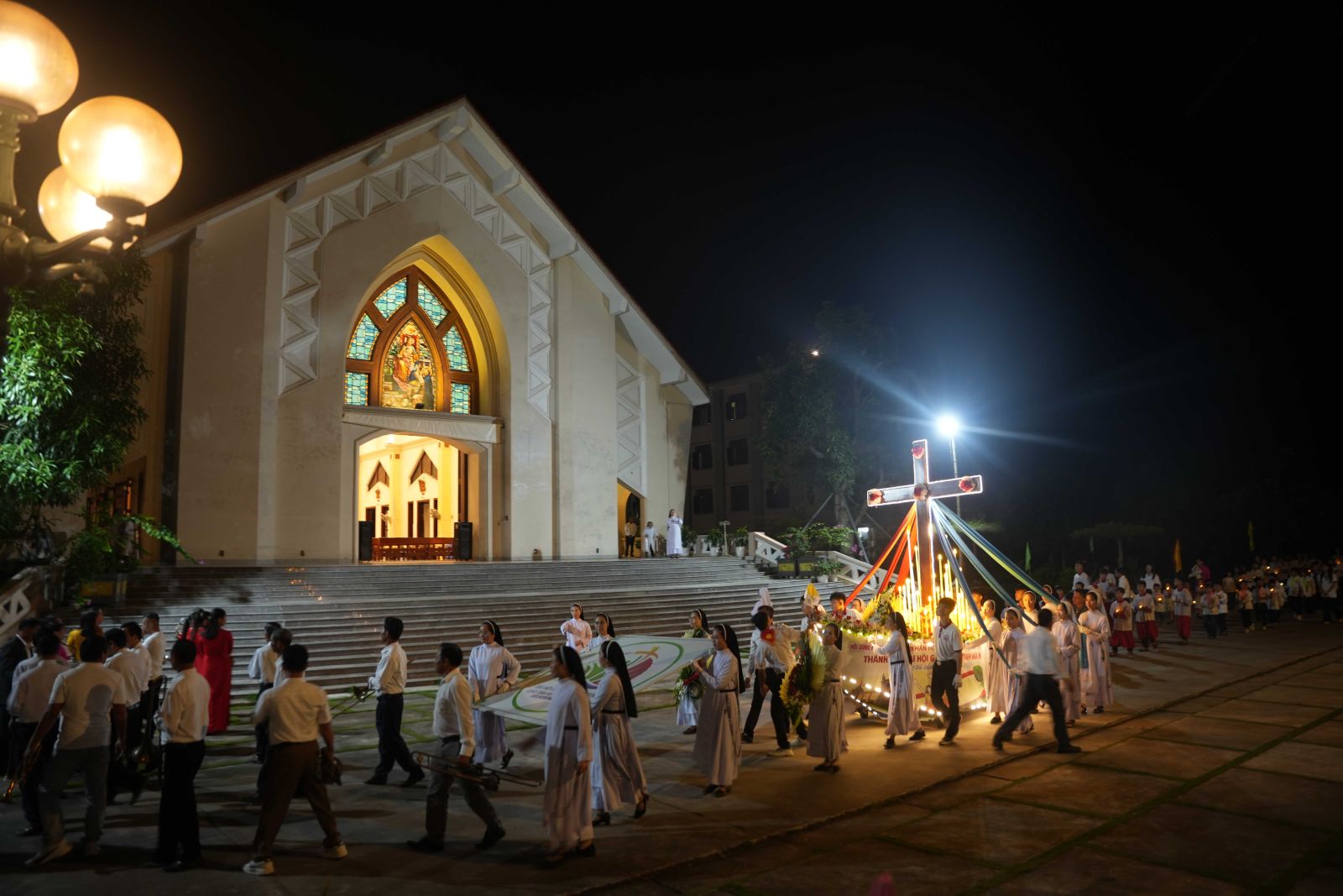 Khi đoàn rước tiến vào tiền sảnh Nhà Nguyện Hội Dòng, vào lúc 19g30, bầu khí trở nên thánh thiêng lạ thường. Trong ánh nến lung linh và lời ca tôn vinh, các chị em Nữ tu cùng cộng đoàn sốt sắng chiêm ngắm Thánh Giá – dấu chỉ của Tình Yêu Cứu Độ. Qua giây phút suy tôn và cầu nguyện trước Thánh Giá, mỗi chị em được mời gọi sống sâu hơn linh đạo Đa Minh: “Contemplare, contemplata aliis tradere” - “chiêm niệm và mang kết quả của sự chiêm niệm đó đến cho tha nhân”.