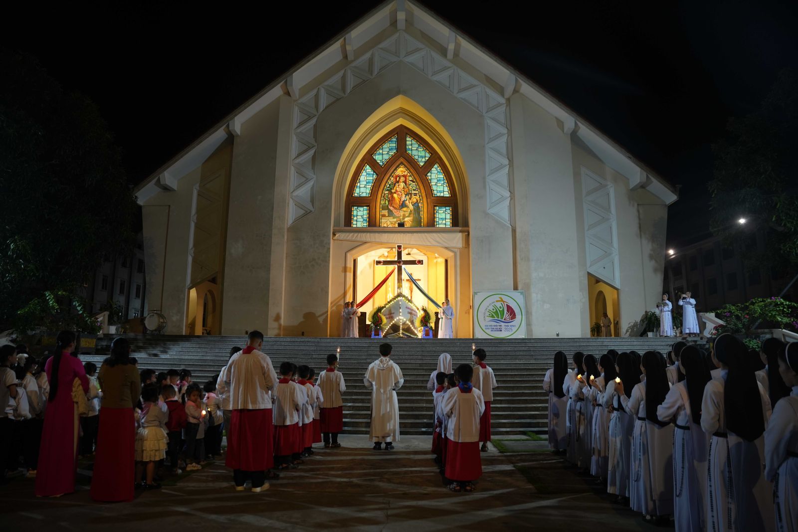 Với chủ đề “Những Người Hành Hương Của Hy Vọng” (Năm Thánh 2025) và chủ đề “Chúng tôi cùng đi với anh” (Ga 21,3) của Đại Hội Giới Trẻ Giáo Tỉnh Hà Nội lần thứ XXI, cha Giuse Trần Văn Thiên, O.P. – Bề trên phó Tu viện Thánh Vinh Sơn Cát Đàm, đã mời gọi cộng đoàn hiệp lòng cầu nguyện và đồng hành với Hội Dòng trong nghi thức cung nghinh Thánh Giá về Nhà Mẹ của Hội Dòng.