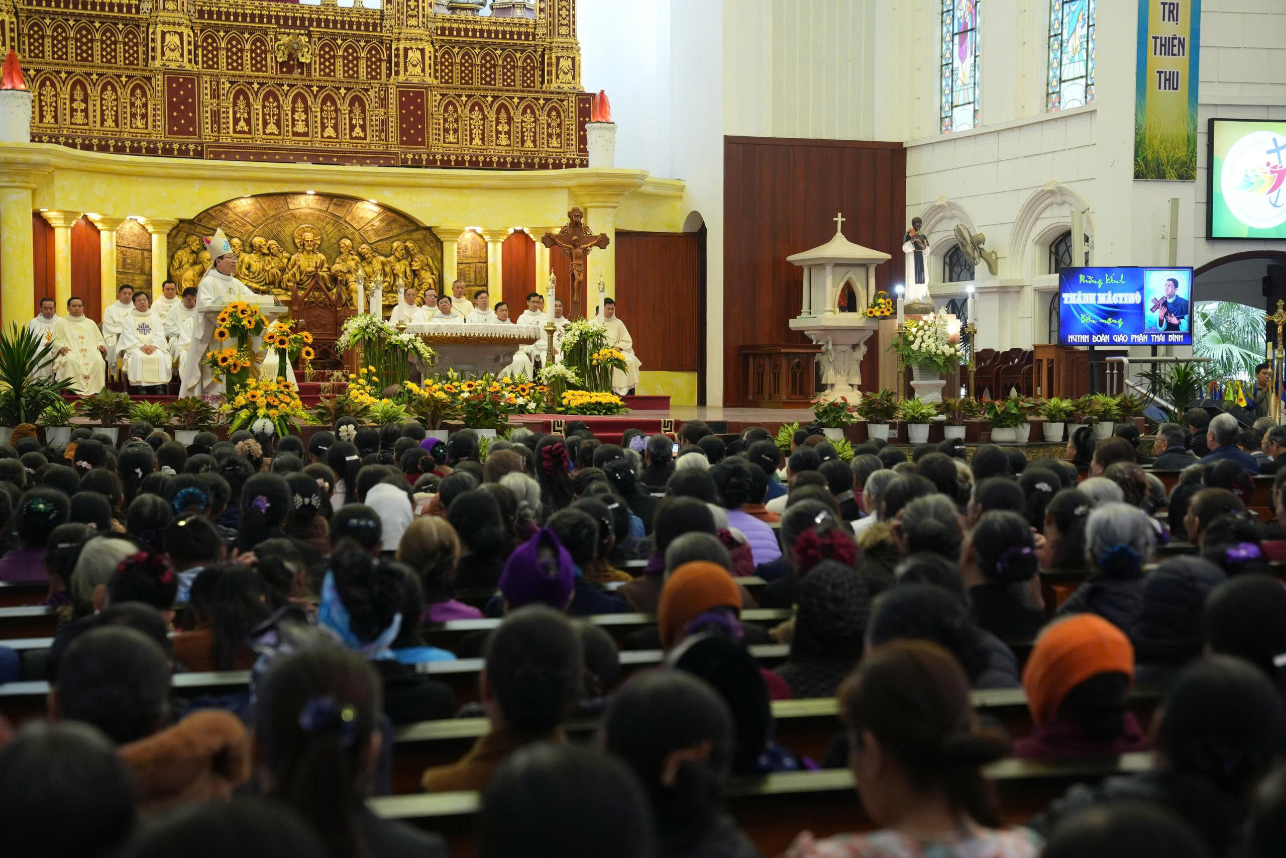 Dưới sự hướng dẫn của Đức cha Đa-minh, Chủ chăn Giáo phận, sự đồng hành của cha Đặc trách Giu-se Bùi Văn Phương, đúng 08g00, quý anh chị em huynh đoàn tiến vào Nhà thờ Chính Toà trong bầu khi hân hoan hành hương Năm Thánh. Sau khi ổn định, cộng đoàn được gặp gỡ cha Giu-se Nguyễn Cao Huấn. OP, trong giờ tĩnh tâm với chủ đề: “Thánh Martino – Gương sáng của hy vọng”.