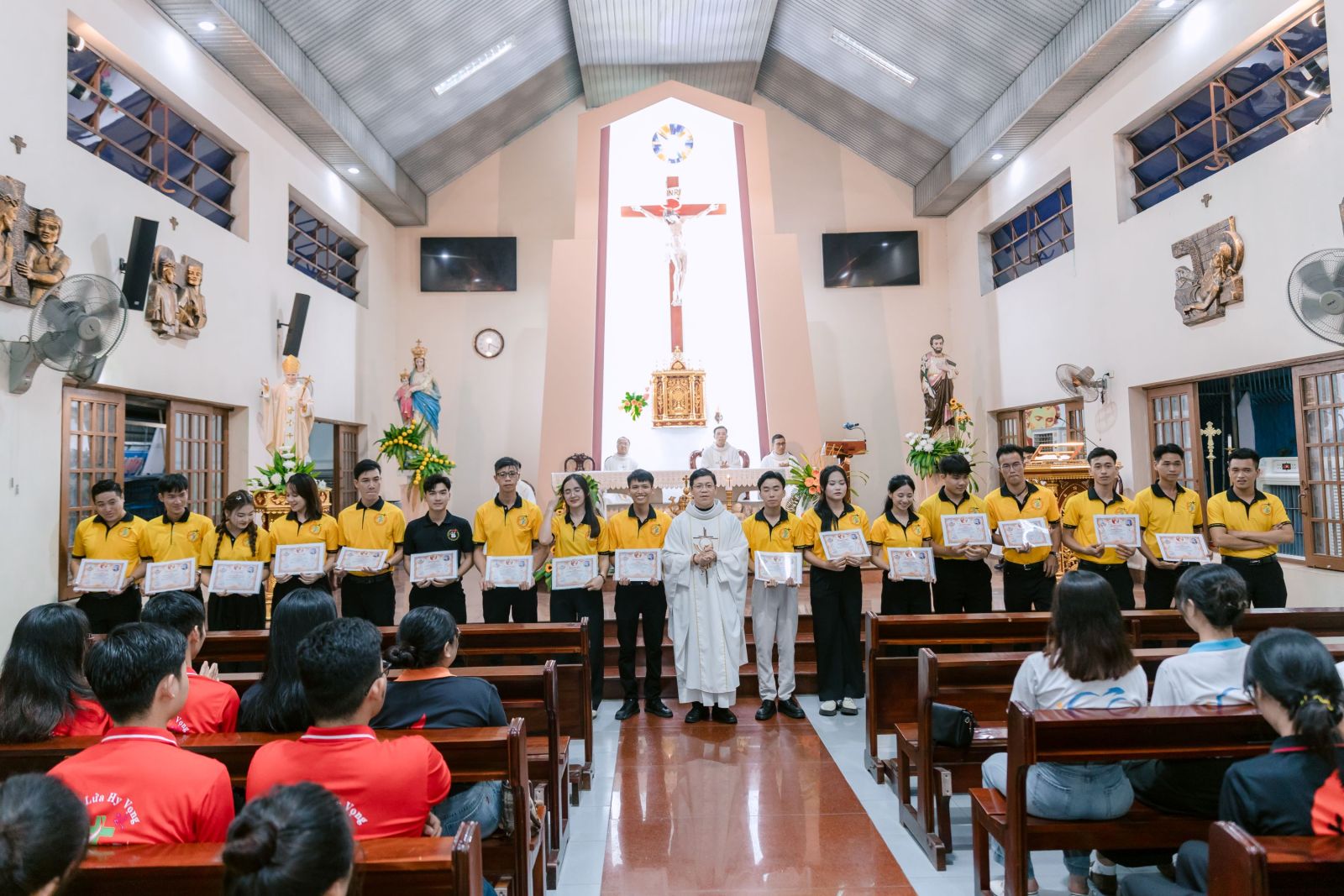 Trước khi Thánh lễ kết thúc, cha Đồng hành Phê-rô Ver. trao văn thư bổ nhiệm cho BĐH nhóm khóa 2025-2026. Tiếp đó, trưởng nhóm khóa 2024–2025 đại diện BĐH mãn nhiệm dâng lời tri ân sâu sắc tới quý cha, quý tu sĩ, ân nhân, anh chị cựu và tới mỗi thành viên trong nhóm – những người đã cùng chung tay xây dựng một gia đình đức tin tràn đầy yêu thương.