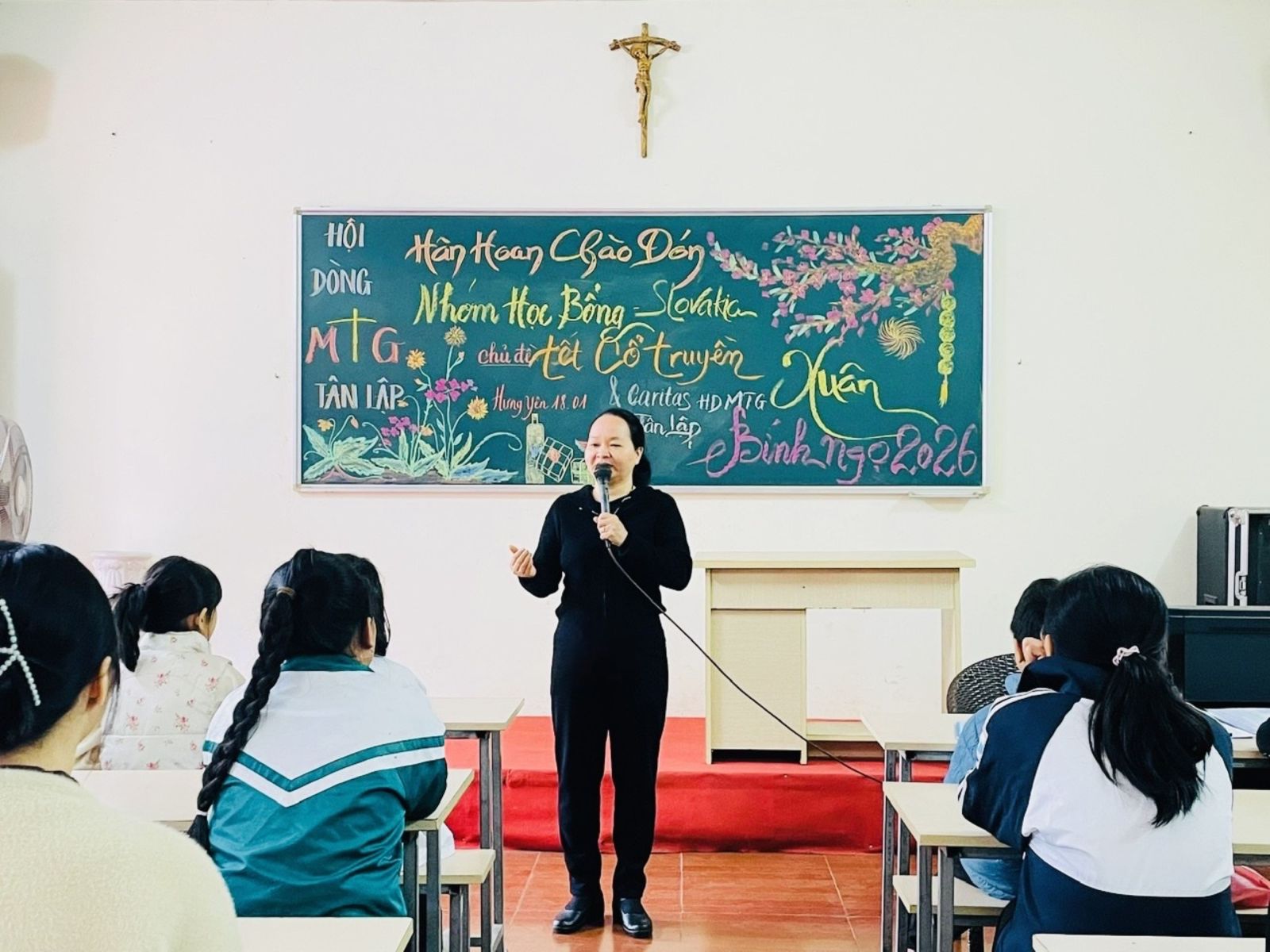 Sau đó, dì Maria Phạm Thị Dung - Hội dòng Mến Thánh Giá Tân Lập đã có phần chia sẻ về ý nghĩa của Tết Cổ Truyền dân tộc. Qua đó, dì mời gọi các em biết trân trọng cội nguồn, ghi nhớ công ơn tổ tiên, ông bà, cha mẹ những người đã sinh thành và dưỡng dục mình, đồng thời gìn giữ và phát huy các giá trị truyền thống tốt đẹp của gia đình và dân tộc.