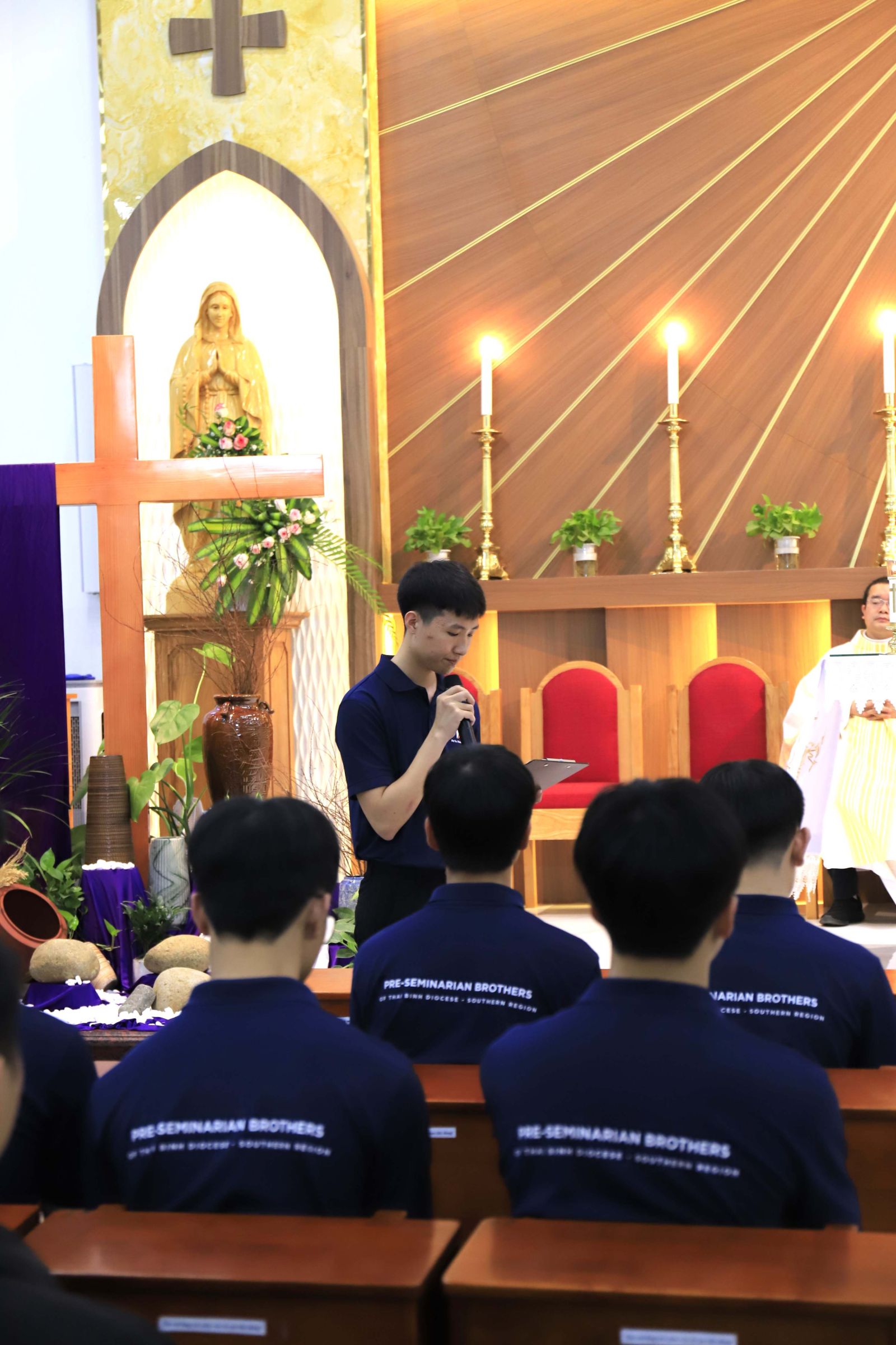 Trong phần phụng vụ Lời Chúa, cha Giuse Trần Ngọc Tuấn - Đặc trách Dự tu Giáo phận Thái Bình tại miền Nam - đã dẫn dắt cộng đoàn chiêm ngắm dung mạo Thánh Giuse, người cha âm thầm nhưng vĩ đại trong chương trình cứu độ của Thiên Chúa. Ngài nhấn mạnh rằng Thánh Giuse không phải là người của những lời nói lớn lao, nhưng là con người của hành động, của sự vâng phục mau mắn và trọn vẹn trước thánh ý Thiên Chúa.
