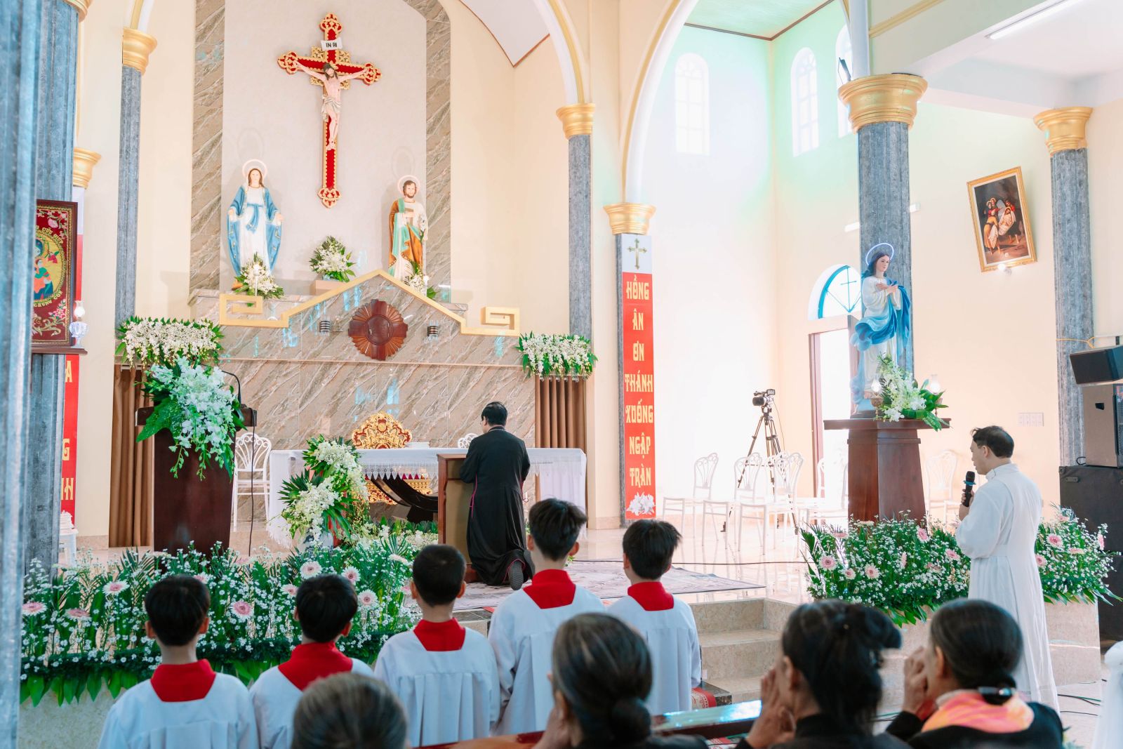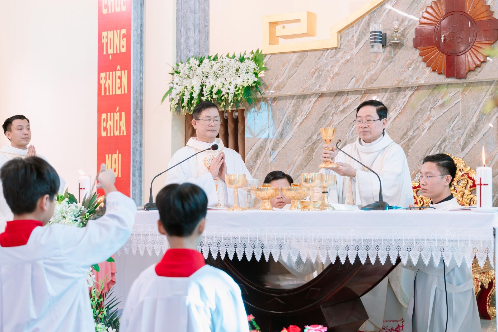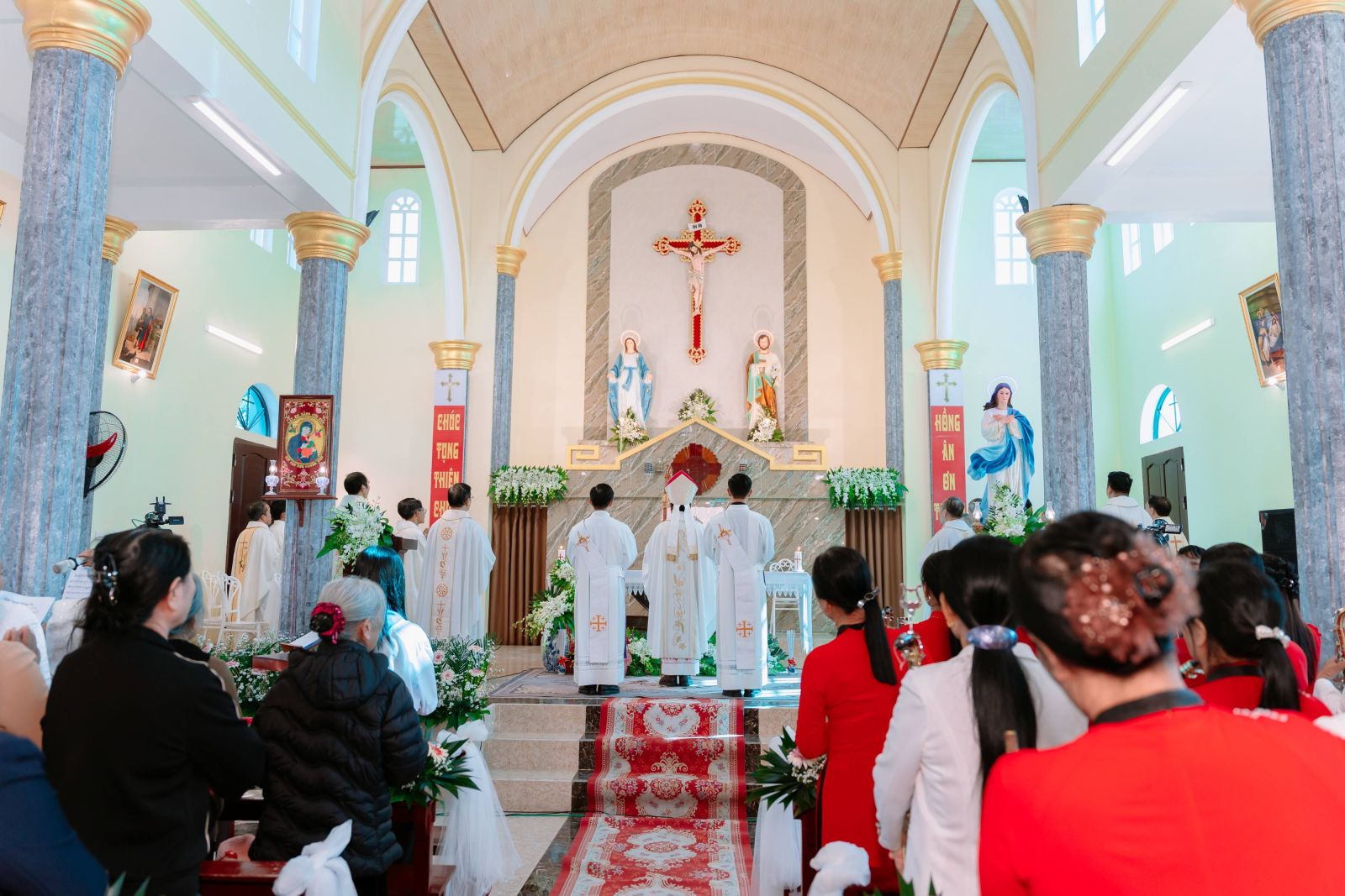 Thánh lễ mừng kính Đức Maria Vô Nhiễm Nguyên Tội, Bổn mạng Giáo họ, tạ ơn khánh thành ngôi Thánh đường được cử hành thật long trọng và sốt sắng.