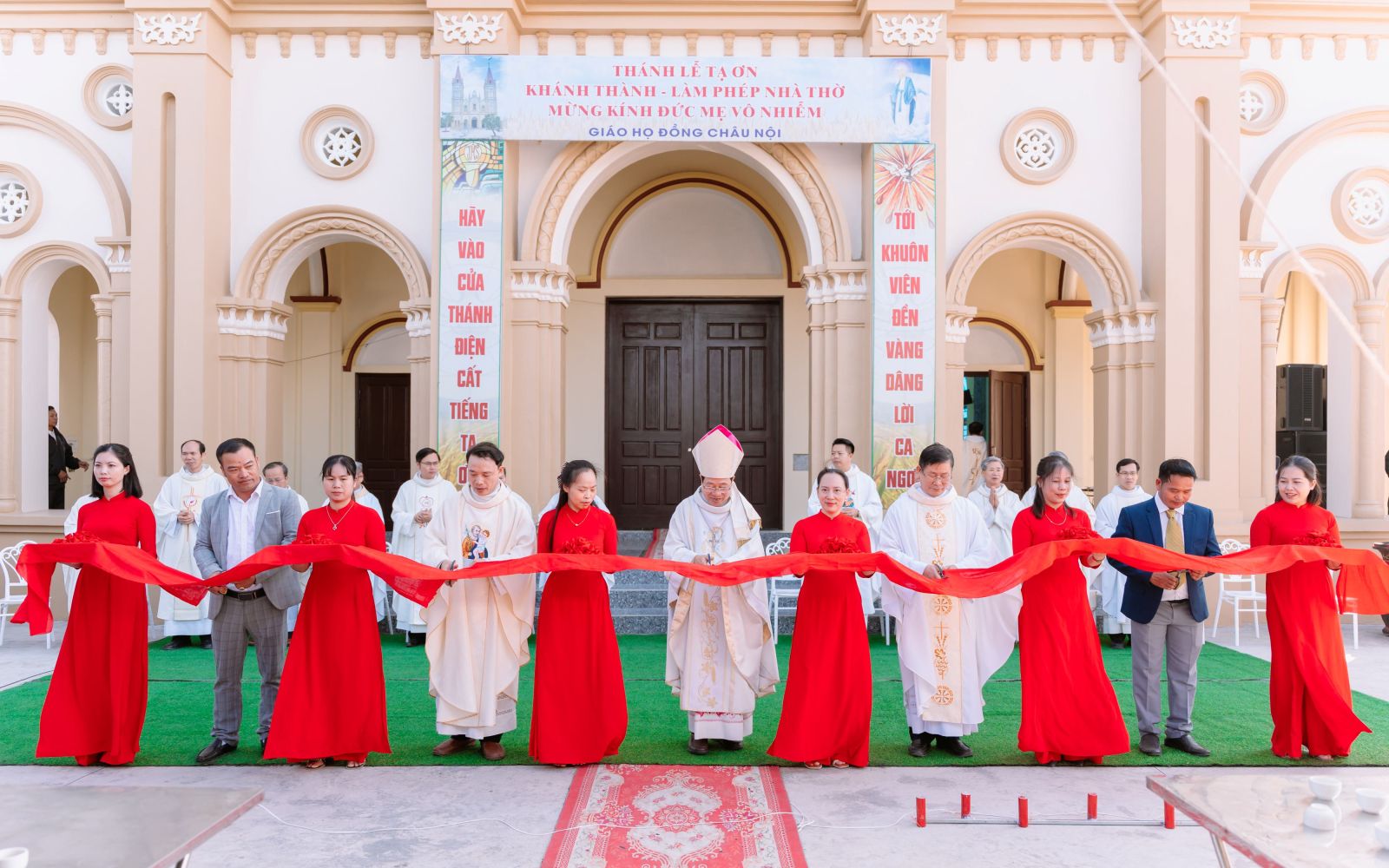 Trong ngày hồng phúc này, Giáo họ Đồng Châu Nội vui mừng chào đón Đức Cha Đa-minh Đặng Văn Cầu - Giám mục Giáo phận về chủ sự nghi thức cắt băng khánh thành, làm phép ngôi nhà thờ mới và chủ tế Thánh lễ tạ ơn. Sau phút giây chào đón, Đức cha đã gặp gỡ cộng đoàn, thăm viếng mục vụ và khích lệ tinh thần và cầu chúc giáo họ luôn trung thành với đời sống đức tin.