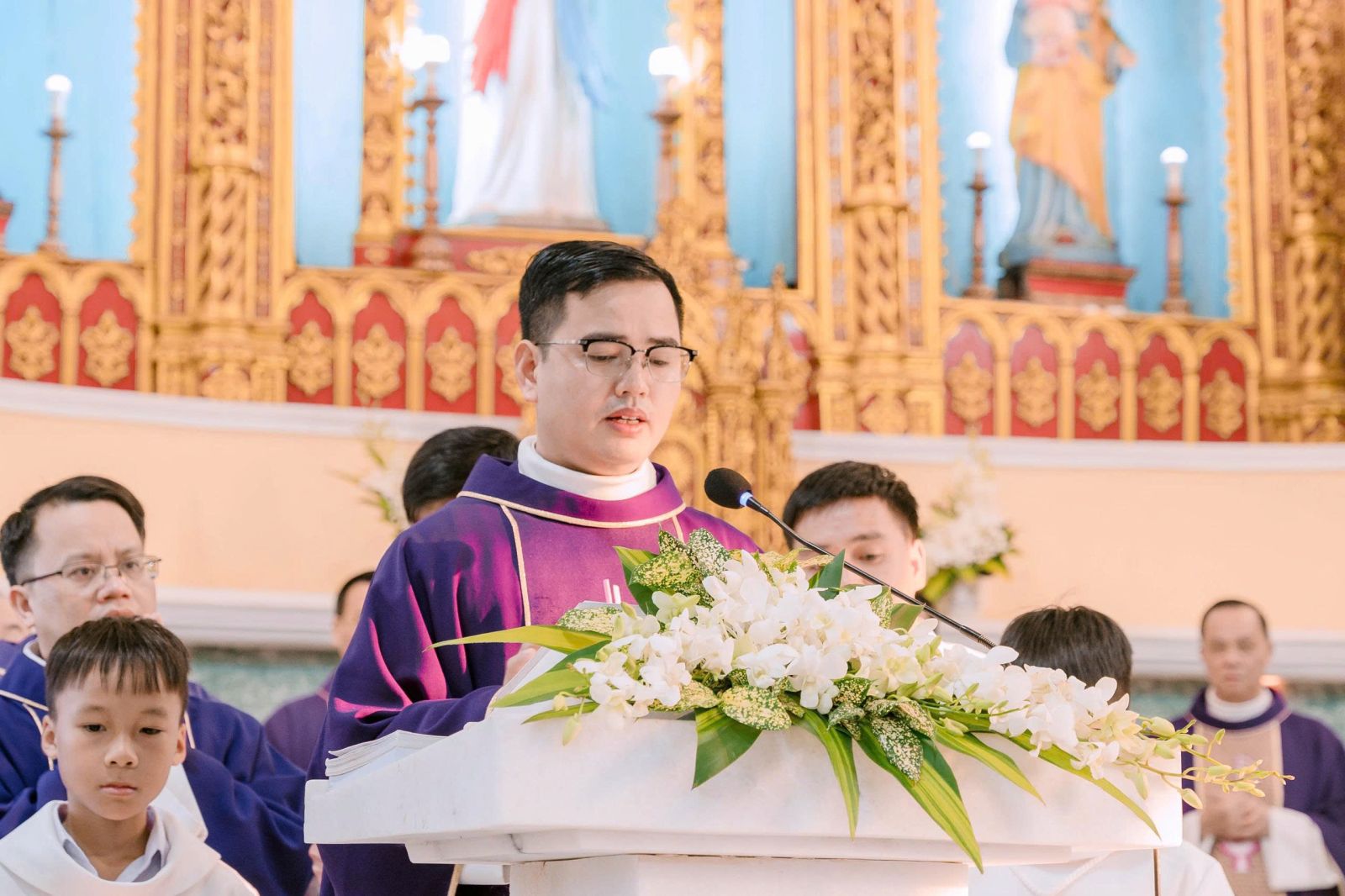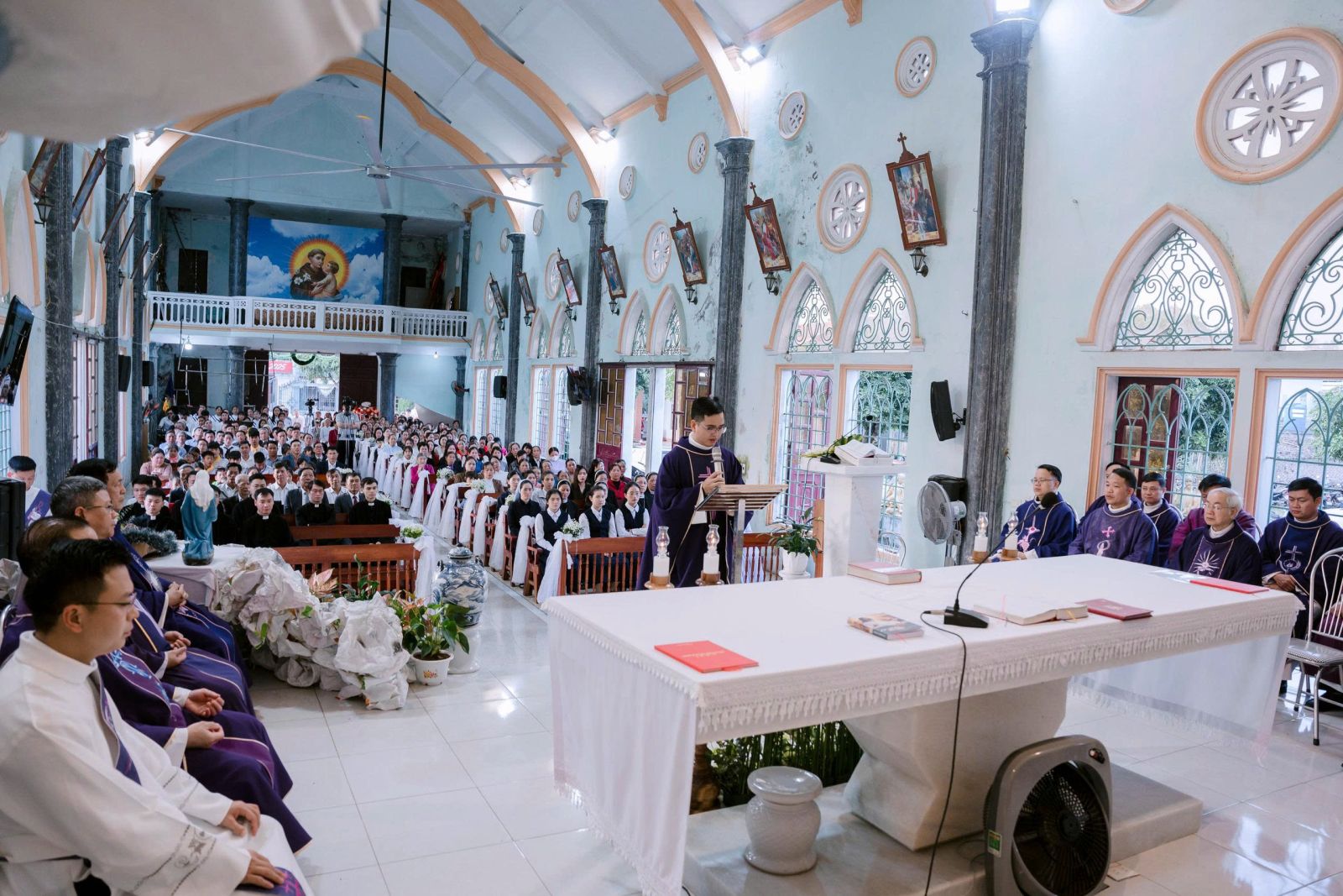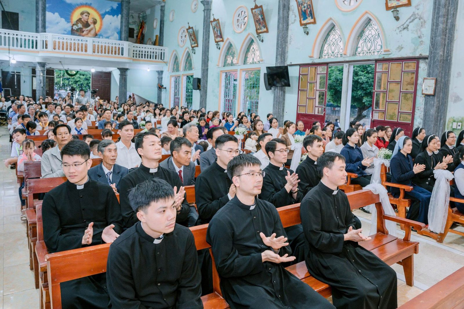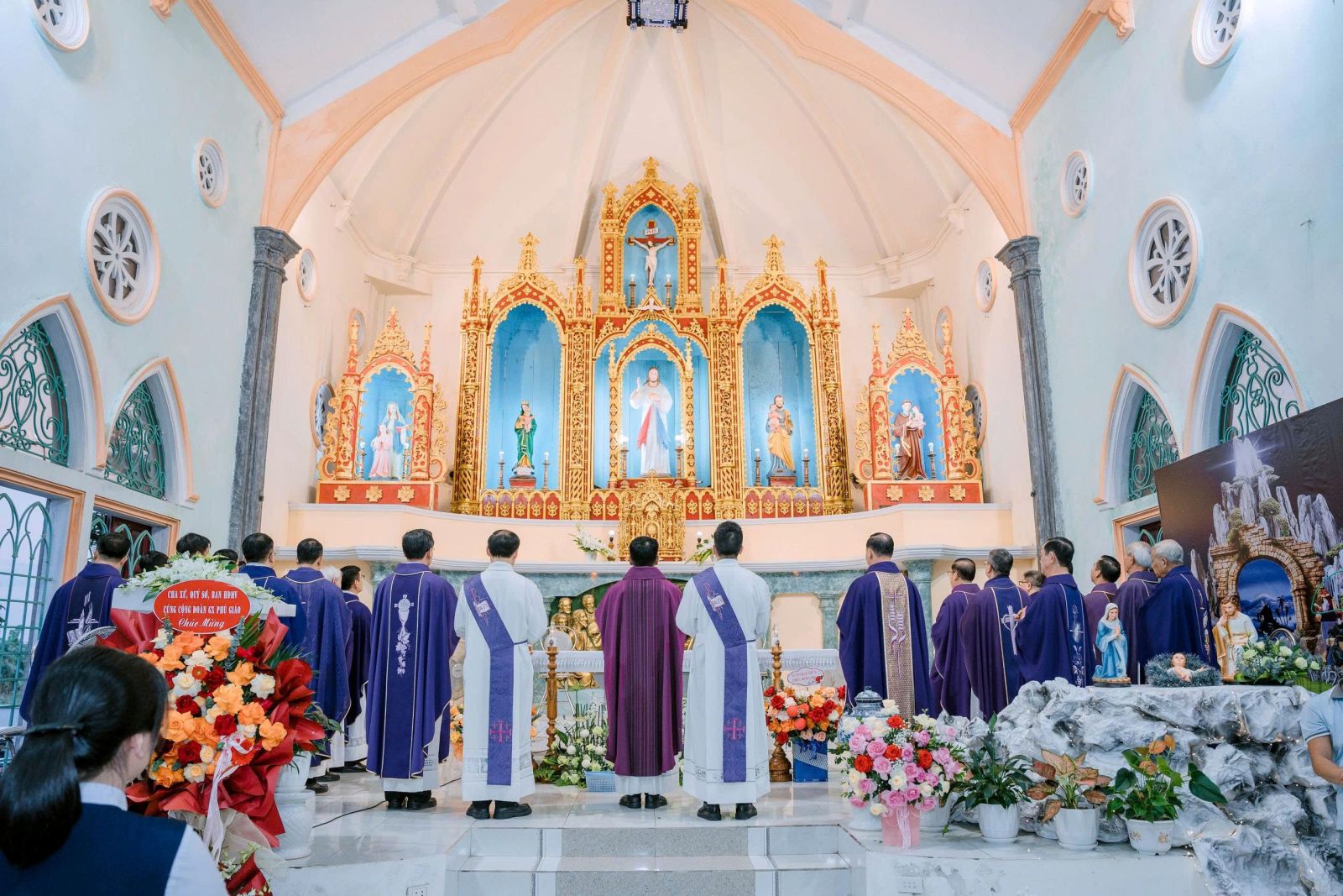 Sau cuộc rước, Thánh lễ được cử hành thật sốt sắng, long trọng.