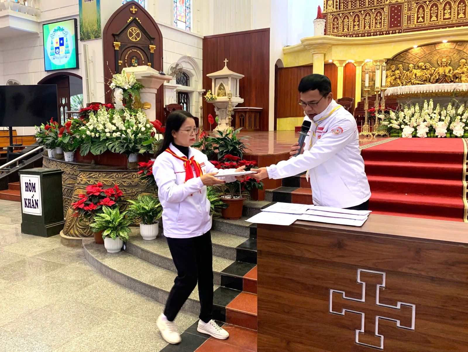 Đúng 14g00, cha Tuyên uý Giuse Nguyễn Văn Tuyên khai mạc kì thi bằng nghi thức thánh hoá đầu giờ. Cha căn dặn các em thiếu nhi thực hiện bài thi với tinh thần nghiêm túc và sự trung thực, bởi Chúa không cần những thành tích cho bằng lòng mến chân thật của các em khi làm bài.