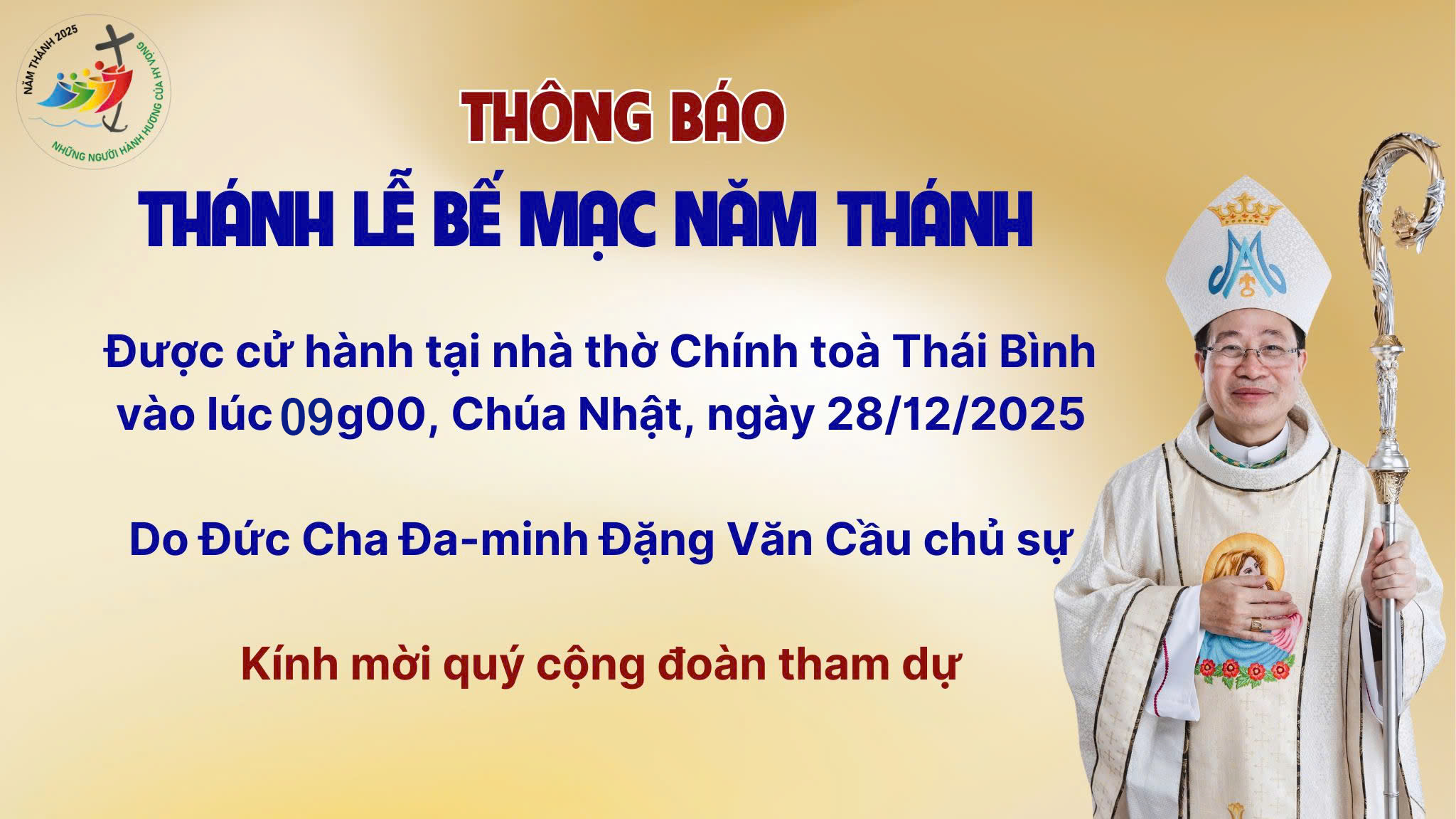 Kính gửi quý Đức Ông, quý cha, quý nam nữ tu sỹ, chủng sinh cùng toàn thể cộng đoàn dân Chúa Giáo phận Thái Bình.