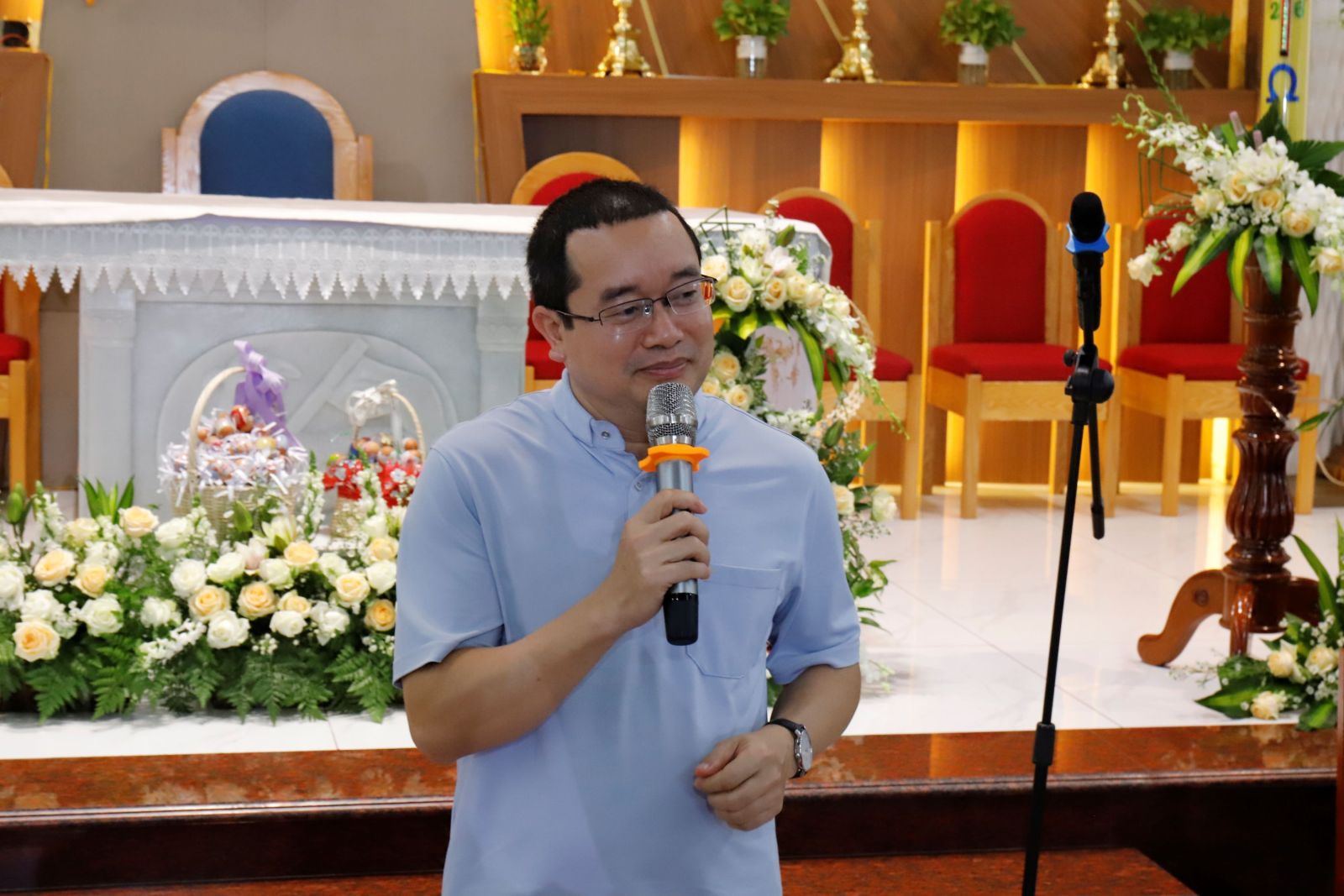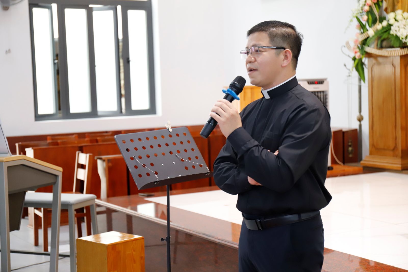 Tiếp đó, cha Phó Giám đốc Trụ sở lên thánh hóa đầu giờ và chia sẻ lý do của buổi gặp gỡ. Cha mời gọi mọi người nhìn nhận cuộc gặp gỡ hôm nay như một cơ hội để sống tinh thần Phục Sinh cách cụ thể: biết mở lòng, biết đến với nhau, biết trao ban và đón nhận.