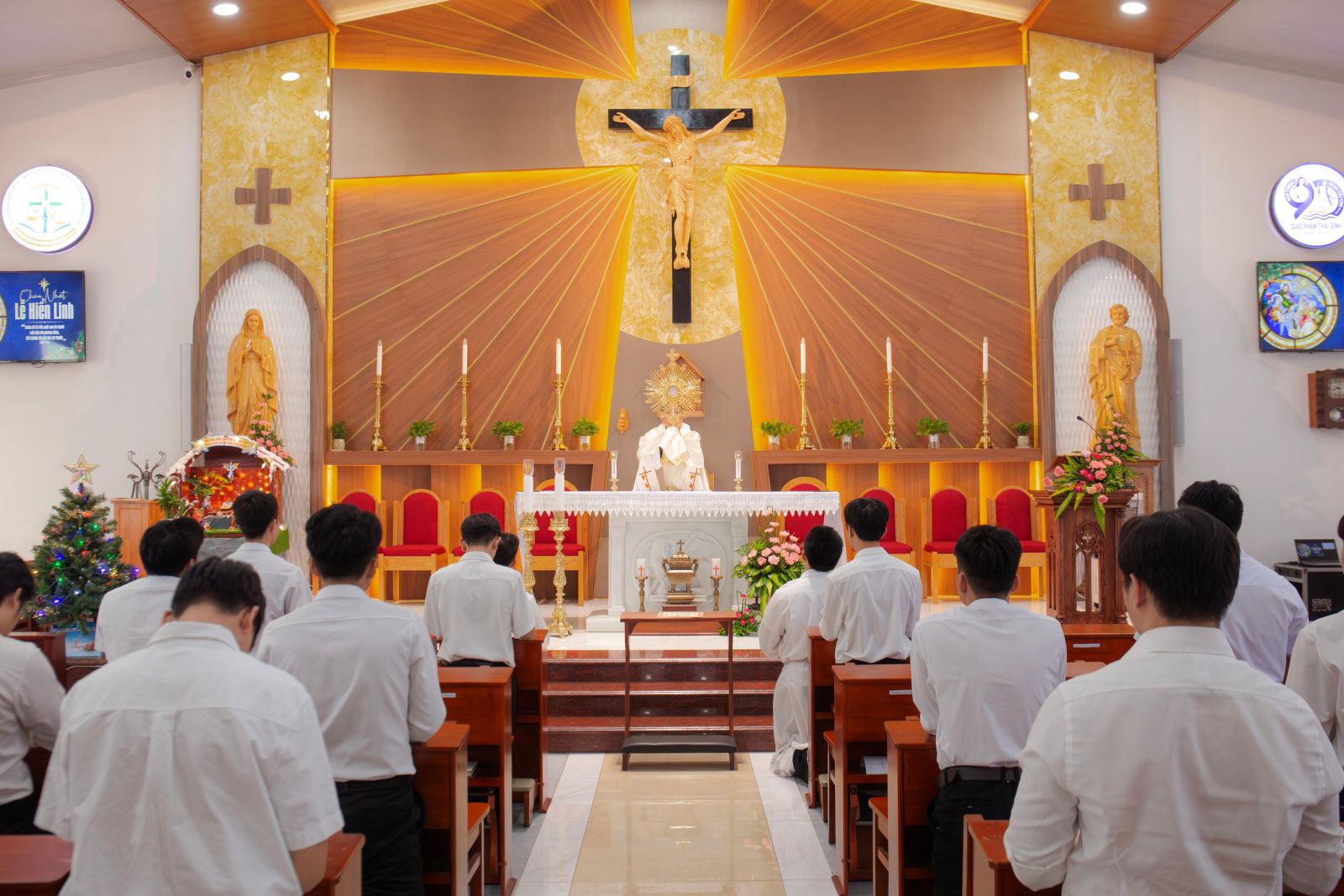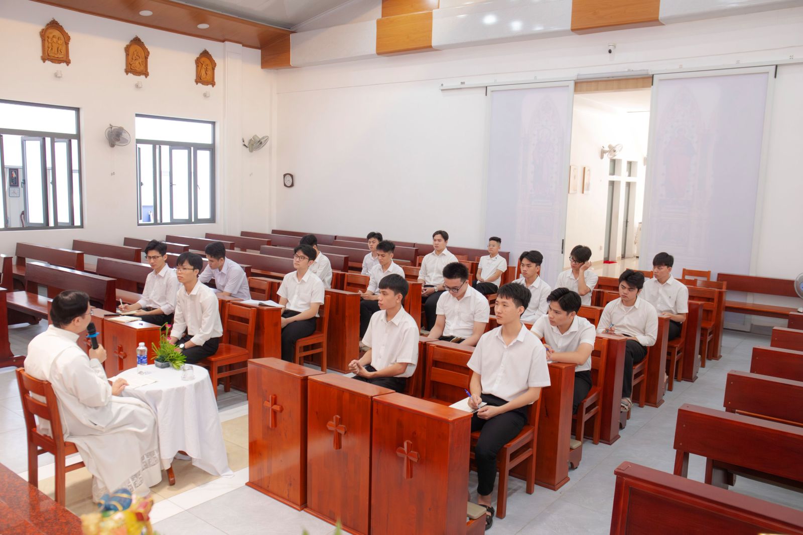 Sau bài gợi ý chia sẻ, vào lúc 09g00, anh em bước vào giờ Chầu Thánh Thể và lãnh nhận Bí tích Hòa Giải. Trong bầu khí thinh lặng thánh thiêng trước Thánh Thể Chúa, mỗi người được mời gọi trở về với chính mình, đặt trọn cuộc đời, ơn gọi và những thao thức trước ánh nhìn yêu thương của Thiên Chúa, để được thanh luyện và canh tân.