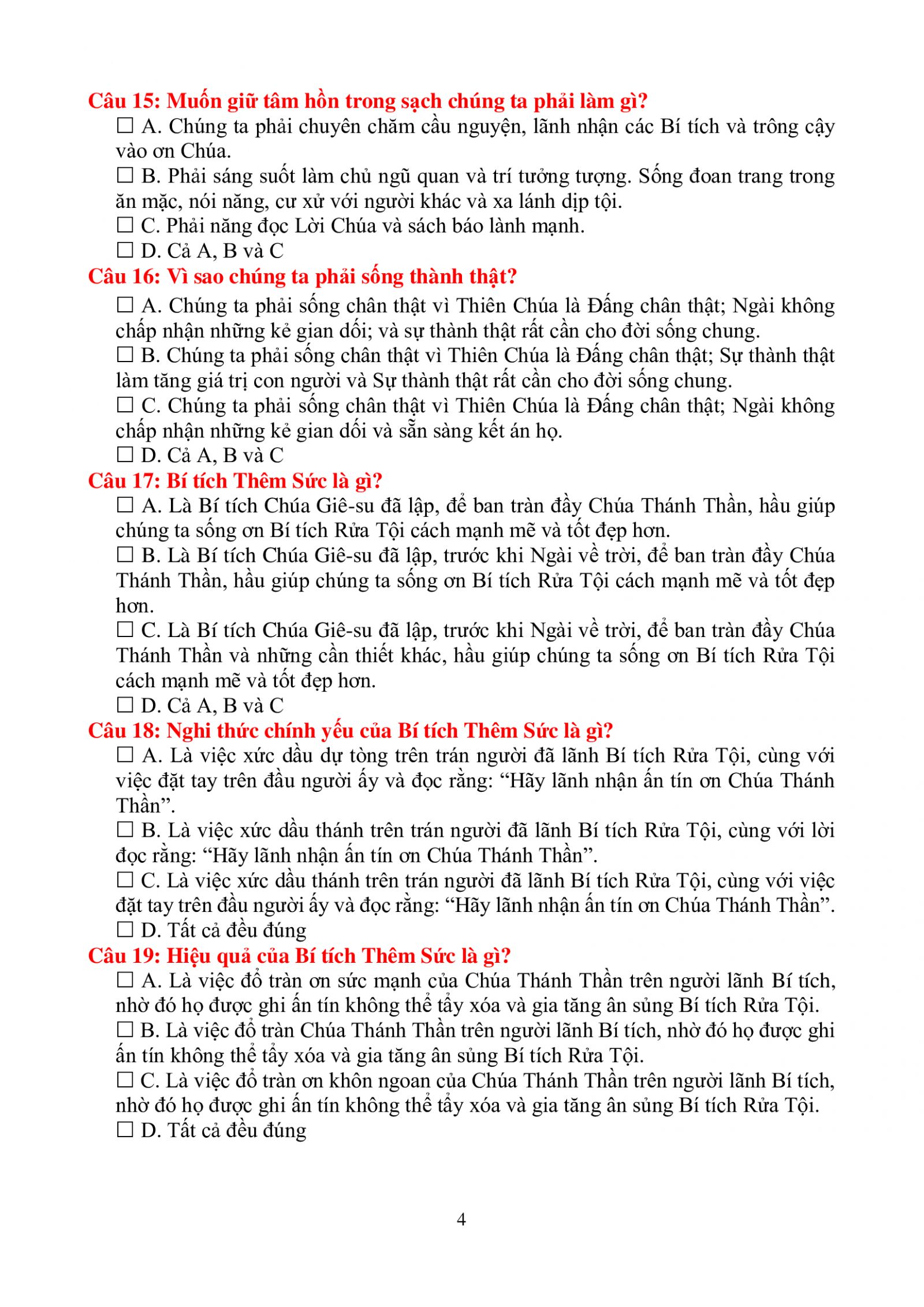 ĐỀ THI GIÁO LÝ THÊM SỨC. Mã số GLTS-04/2024