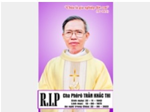 Trong niềm tin và hy vọng vào Chúa Ki-tô Phục Sinh, gia đình chúng con xin kính báo: Bà Cố Catarina Trần Thị Ren (cụ cố Triêm), sinh năm 1946 tại Giáo xứ Bác Trạch; đã được Chúa gọi về hồi 18g00, ngày ...