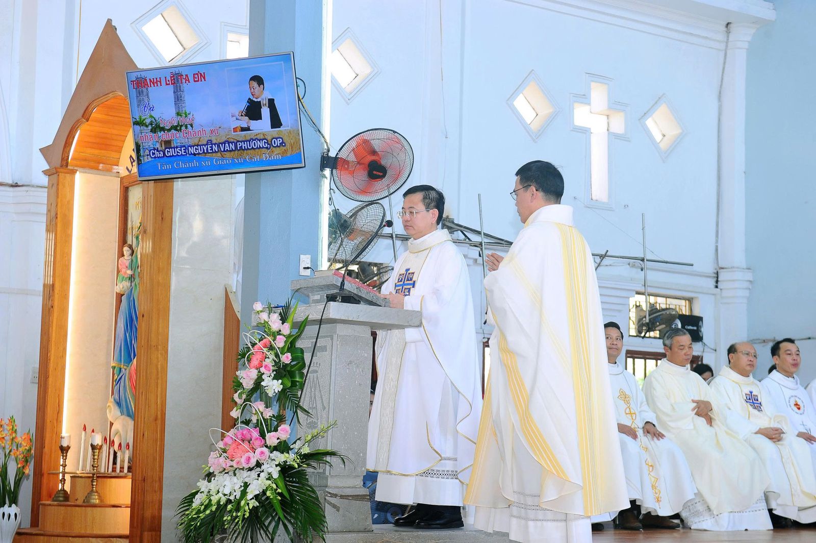 Đồng tế trong Thánh lễ tạ ơn có cha Giu-se Nguyễn Cao Luật, OP., Đại diện Giám tỉnh; cha Giám đốc và quý cha Đại Chủng viện Thánh Tâm Thái Bình, quý cha Tòa Giám mục Thái Bình, cha Giám đốc và quý cha Mái ấm Don Bosco Cát Đàm, quý cha trong và ngoài giáo phận, cùng với Quý Anh Em trong Tu viện thánh Vinh Sơn, và các anh em cùng lớp với cha tân chánh xứ. Ngoài ra còn có quý thầy Phó tế, quý Bề trên Hội dòng nữ Đa Minh Thái Bình; quý tu sĩ trong và ngoài giáo phận, quý Chức Hội đồng Mục vụ liên xứ họ, quý vị ân thân nhân của cha tân Chánh xứ và đông đảo bà con giáo dân Giáo xứ Cát Đàm và các giáo xứ thân cận.