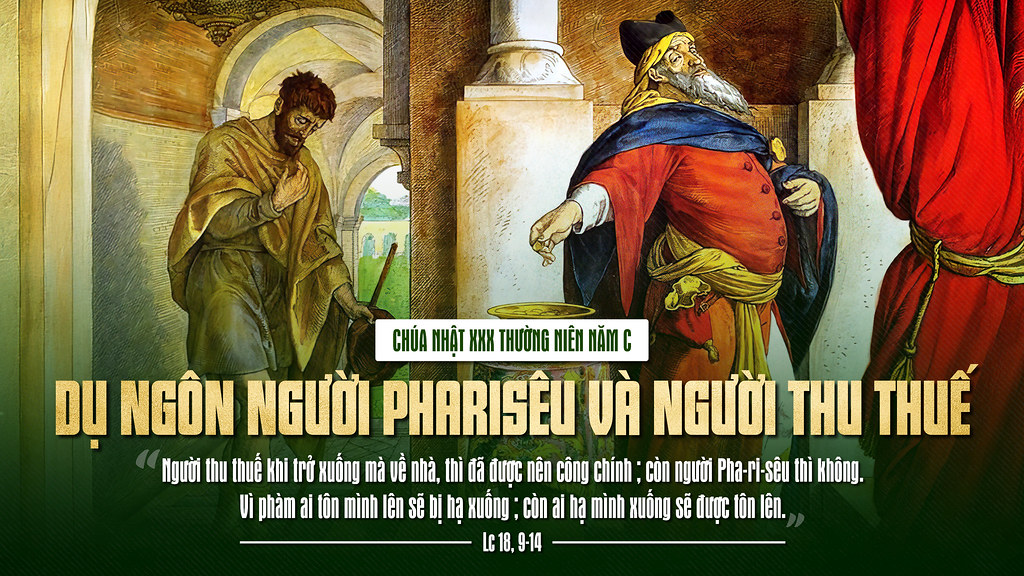 Khi ấy, Chúa Giêsu nói dụ ngôn sau đây với những ai hay tự hào mình là người công chính và hay khinh bỉ kẻ khác: “Có hai người lên đền thờ cầu nguyện, một người biệt phái, một người thu thuế. Người biệt phái đứng thẳng, cầu nguyện rằng: “Lạy Chúa, tôi cảm tạ Chúa vì tôi không như các người khác: tham lam, bất công, ngoại tình, hay là như tên thu thuế kia; tôi ăn chay mỗi tuần hai lần và dâng một phần mười tất cả các hoa lợi của tôi.” Người thu thuế đứng xa xa, không dám ngước mặt lên trời, đấm ngực và nguyện rằng: “Lạy Chúa, xin thương xót tôi là kẻ có tội”. Ta bảo các ngươi: người này ra về được khỏi tội, còn người kia thì không. Vì tất cả những ai tự nâng mình lên, sẽ bị hạ xuống, và ai hạ mình xuống, sẽ được nâng lên.”