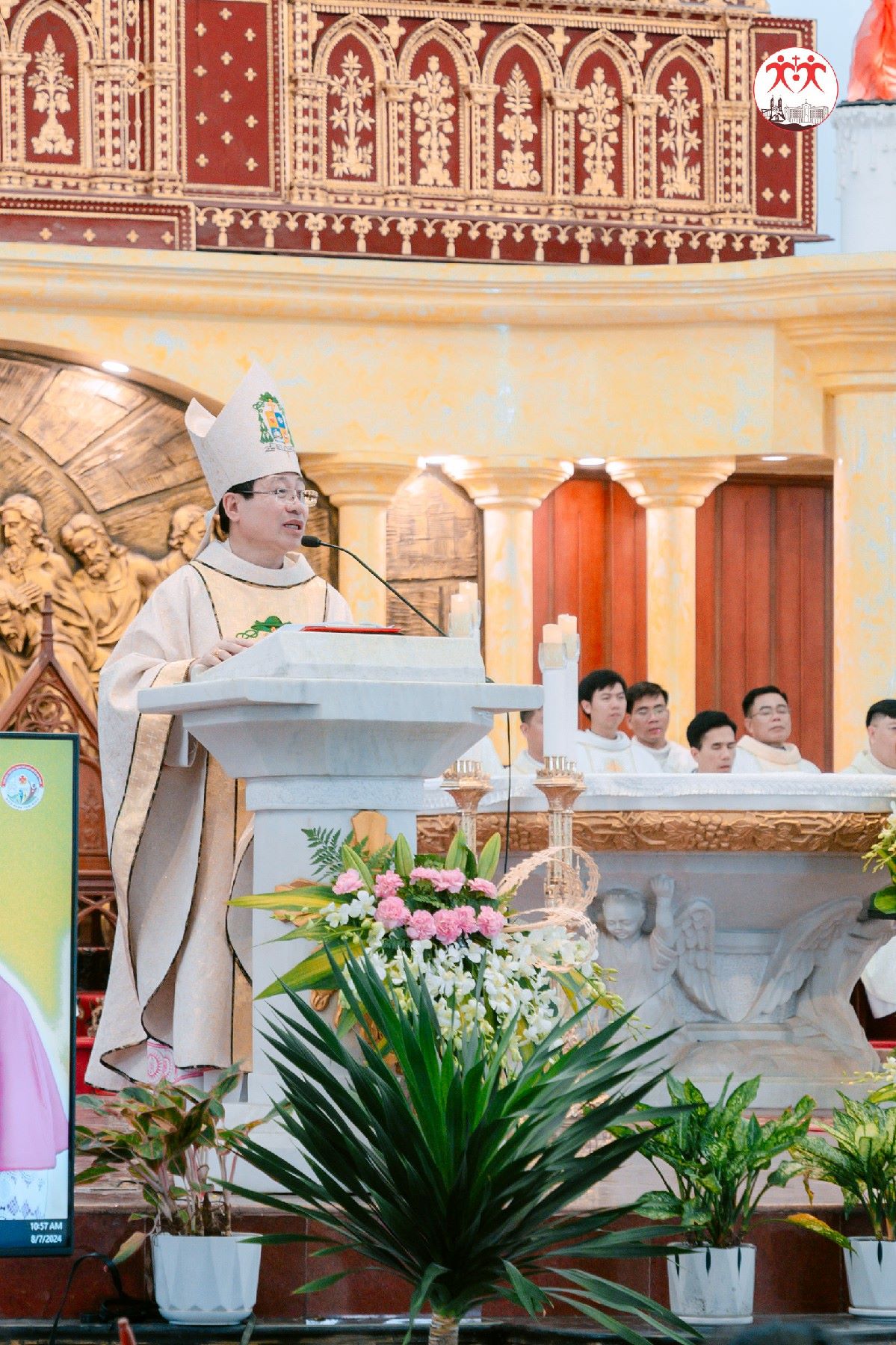 Chia sẻ trong bài giảng lễ, khởi đi từ lệnh truyền của Đức Giê-su trong đoạn kết thúc Tin Mừng theo Thánh Mác-cô: “Anh em hãy đi khắp tứ phương thiên hạ, loan báo Tin mừng cho mọi loài thọ tạo” (Mc 16,15), Đức cha Đa Minh kêu mời mọi thành phần dân Chúa bằng nhiều cách thức khác nhau hãy hăng say lắng nghe Lời Chúa, tìm hiểu Lời Chúa, để cho lời Chúa thấm vào cõi lòng. Từ đó mỗi người sẽ “nói về Chúa’ – rao giảng Tin Mừng cho tất cả mọi người để họ cũng được biết và hiểu về Chúa.
