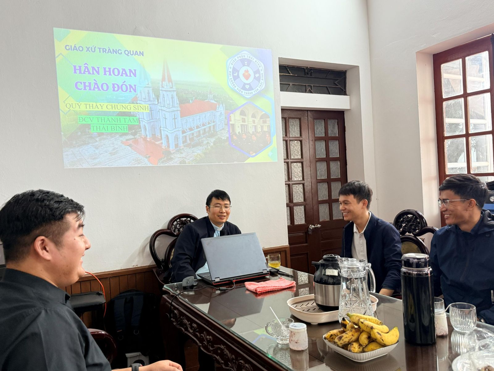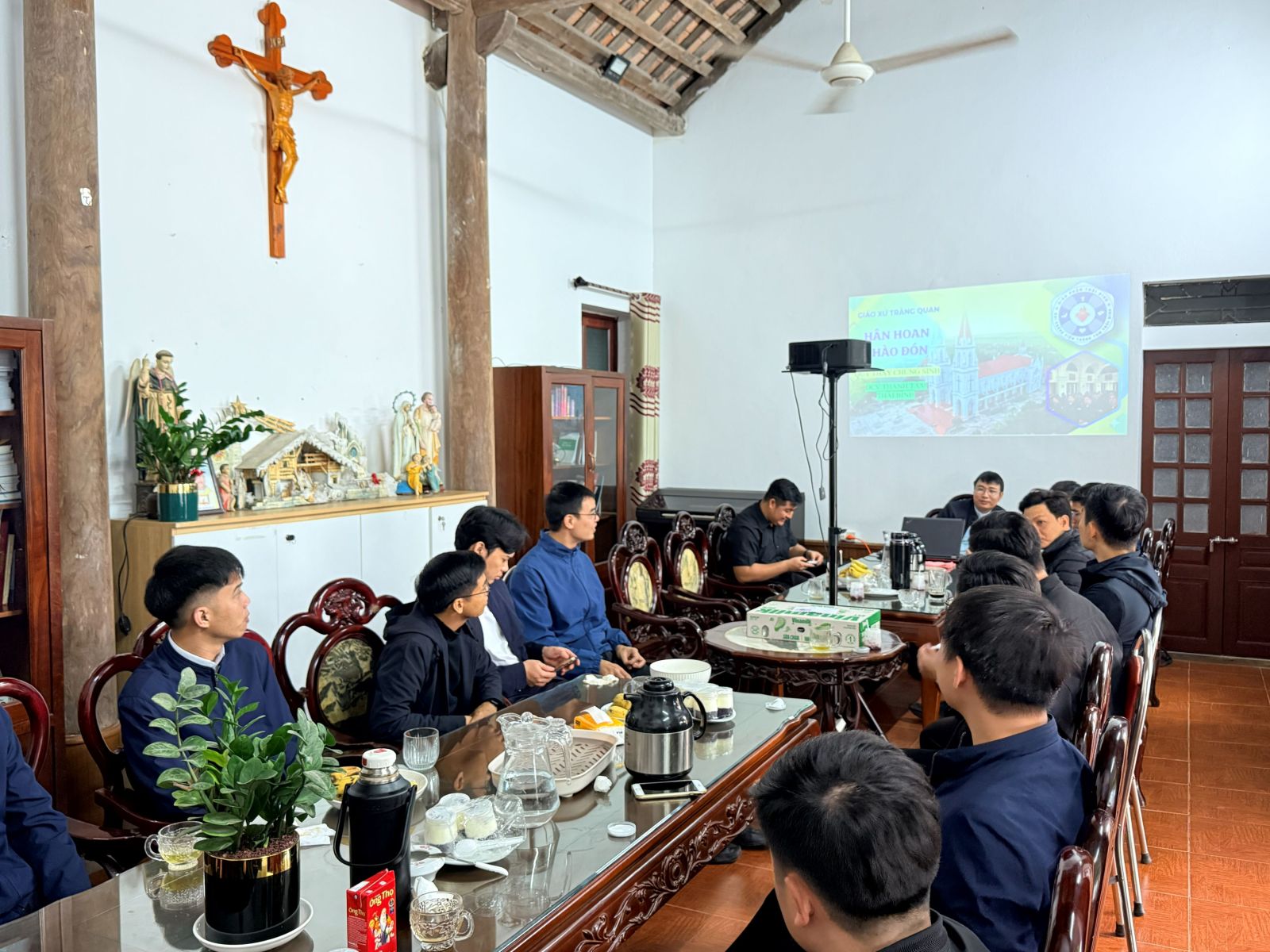 Ngay từ sớm, bầu khí ấm áp và thân tình nơi khuôn viên nhà xứ Tràng Quan đã gợi lên tinh thần hiệp nhất của anh em chủng sinh. Cha xứ Phanxico Xavie Bùi Công Hoan đã tiếp đón và dành ít phút gặp gỡ, chia sẻ những tâm tình rất đơn sơ chân thành, khích lệ hành trình ơn gọi cho anh em.