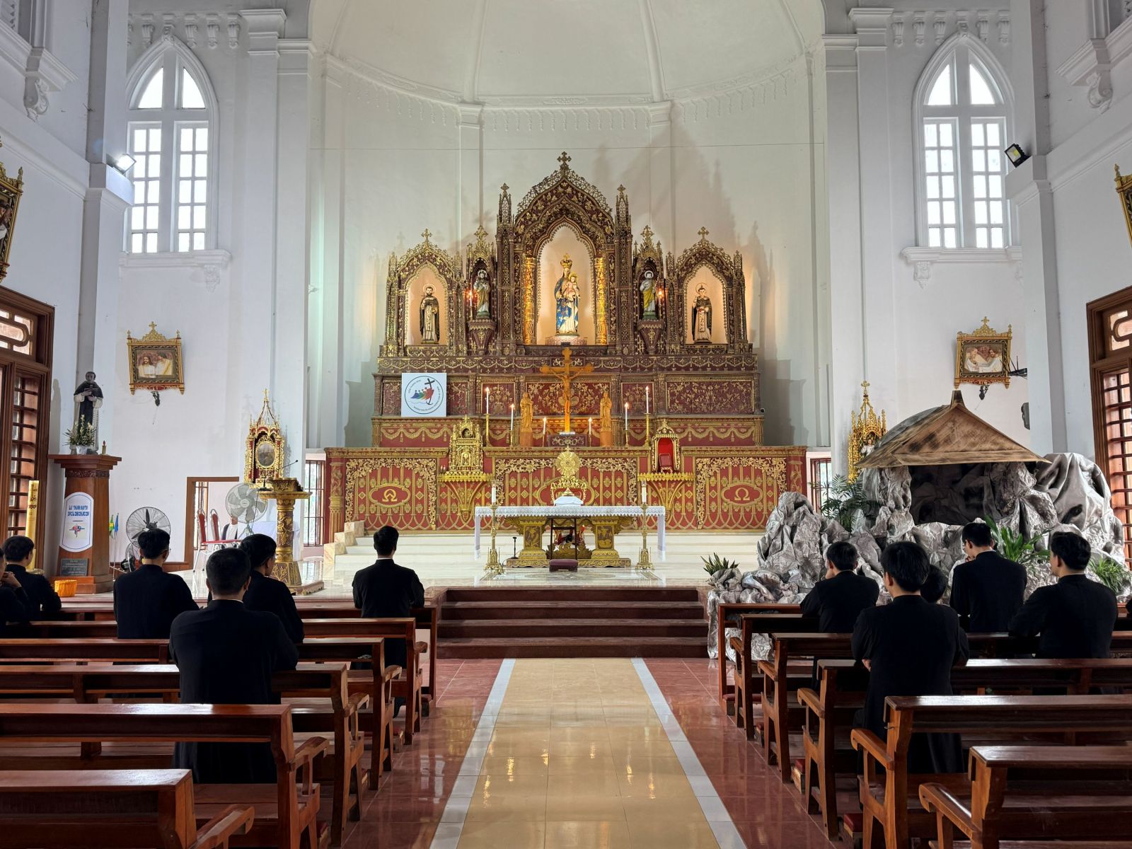 Sau giờ chia sẻ, anh em dành những giây phút hồi tâm, lãnh nhận Bí tích Hòa Giải và Chầu Chúa Giê-su Thánh Thể trong bầu khí trang nghiêm và sốt sáng. Trước Thánh Thể Chúa Giêsu, anh em dâng lên những thao thức, những dự định và cả những yếu đuối, xin Ngài hướng dẫn và củng cố trong từng bước đường sắp tới.