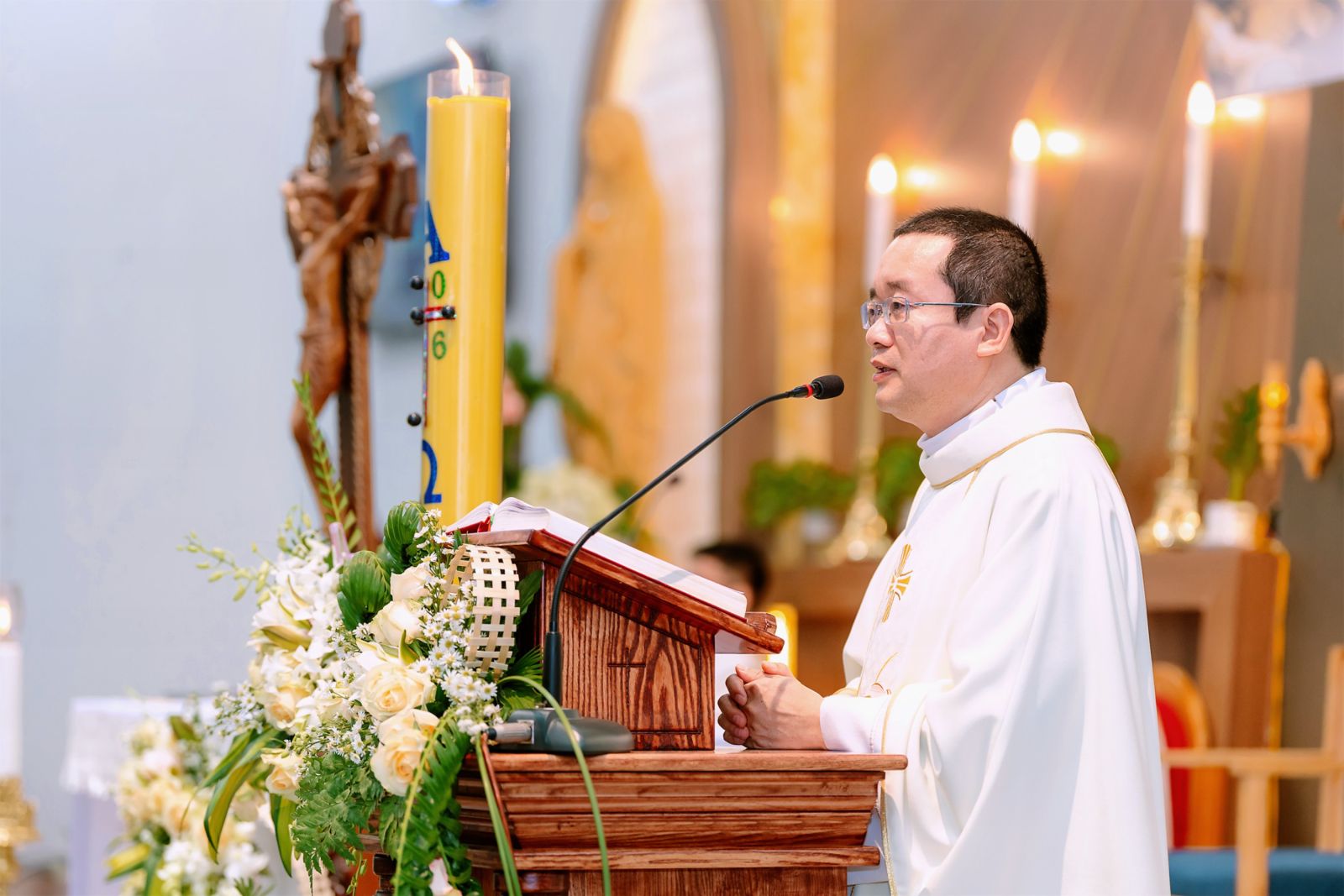 Trong bài giảng, cha Phaolo Phạm Văn Liêm đã mượn hình ảnh “nhật thực” từ bộ phim đang rất nổi tiếng “Hẹn em ngày nhật thức” để khắc họa sâu sắc mầu nhiệm Chúa Kitô sống lại như luồng ánh sáng tối thượng xóa tan mọi bóng tối. Cha ví biến cố tử nạn của Chúa Giêsu như một cuộc “nhật thực về tâm linh”, khiến các môn đệ xưa kia chìm vào sự hoang mang, sợ hãi và thất vọng tột cùng khi tưởng rằng cái chết đã chiến thắng. Tuy nhiên, cũng như hiện tượng nhật thực chỉ là tạm thời, ánh sáng mặt trời sẽ trở lại chói lọi hơn, sự Phục sinh của Chúa chính là câu trả lời khẳng định rằng bóng tối và tội lỗi không thể có quyền năng vĩnh viễn.